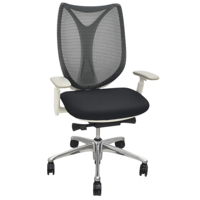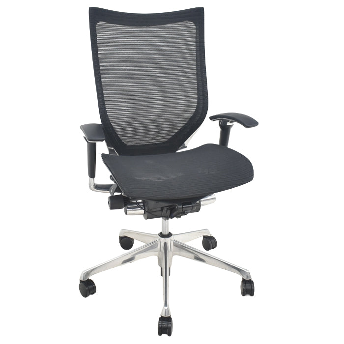コンテッサの一覧ページです。 コンテッサチェアは、イタリアのインダストリアルデザインの名門“GIUGIARO DESIGN”とのデザインコラボレーションにより生まれた革新的なタスクチェアです。なめらかにデザインされたアルミフレーム。色鮮やかなメッシュ素材の背と座。ふたつのコンビネーションは、見るものに軽快感や透明感、心地よさと同時に強烈な個性と存在感を感じさせます。中古のコンテッサチェアをお探しなら中古オフィス家具のトレタテをご利用ください。 左側のレバーを操作して、リクライニングを自由に動かす「フリーロッキング」と、好みの角度(5段階)で固定する「角度固定」を切り替えられます。 アームパッドは、内側20°、外側10°の角度調整機能を搭載。パソコン操作時など、肘への負担を軽減し、やさしくサポートします。 新開発の弾性ポリエステルをベースに心地よいホールド性を備えたメッシュを座面と背に使用しています。 座面の高さ調節は右側のレバーで。120mmのストロークで、お好みの高さに設定可能です。 座面の前後調整は、レバー操作で簡単に行うことができます。 前後50mmの調整が可能です。 アームレストは、持ち上げるだけで高さ調節(100mm)ができるラチェット式です。 アンクルチルトリクライニングによる、 26°のゆったりしたロッキング角度を実現。...