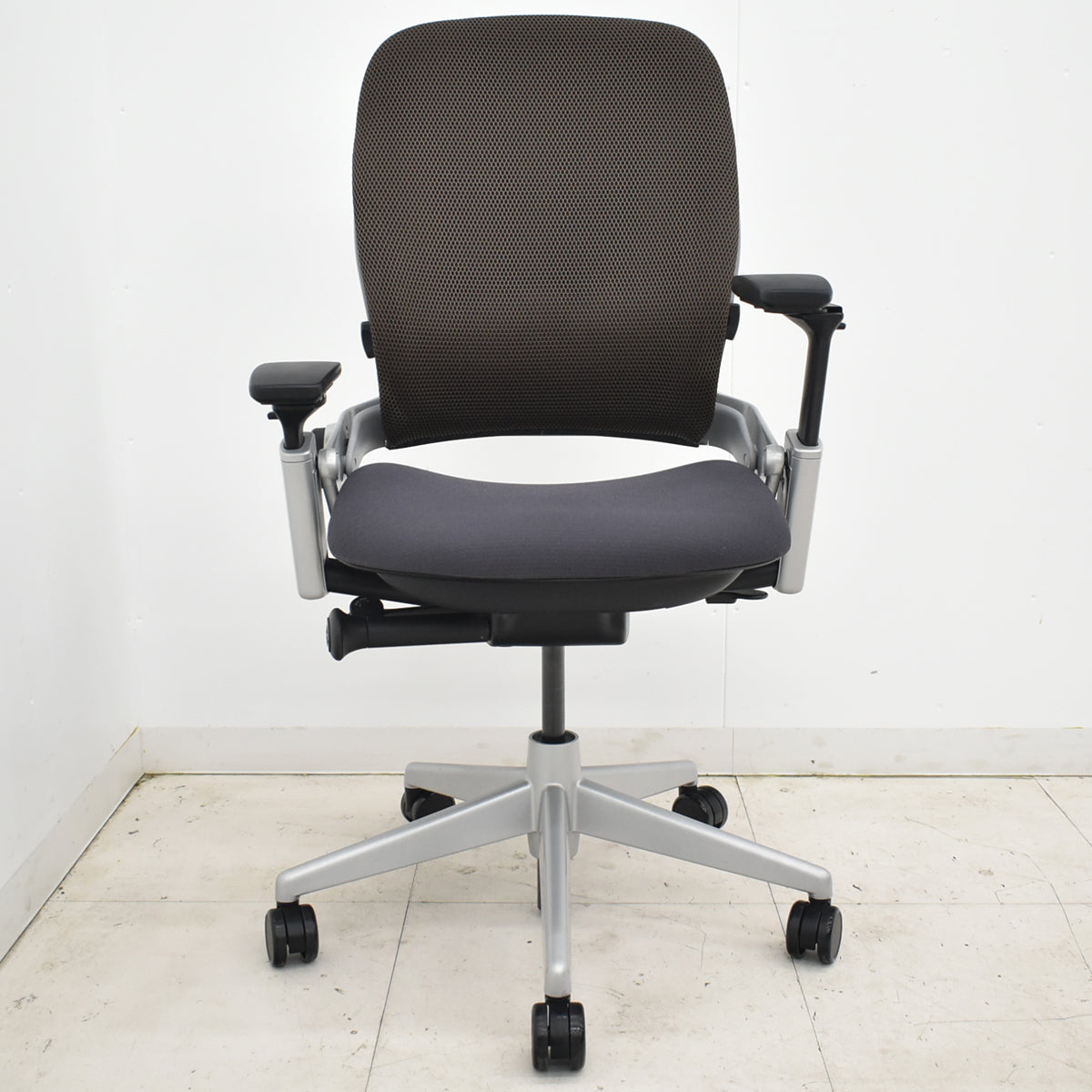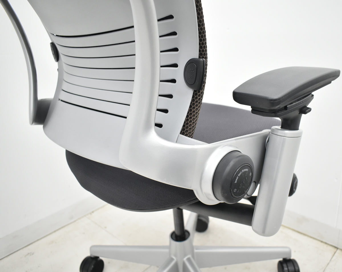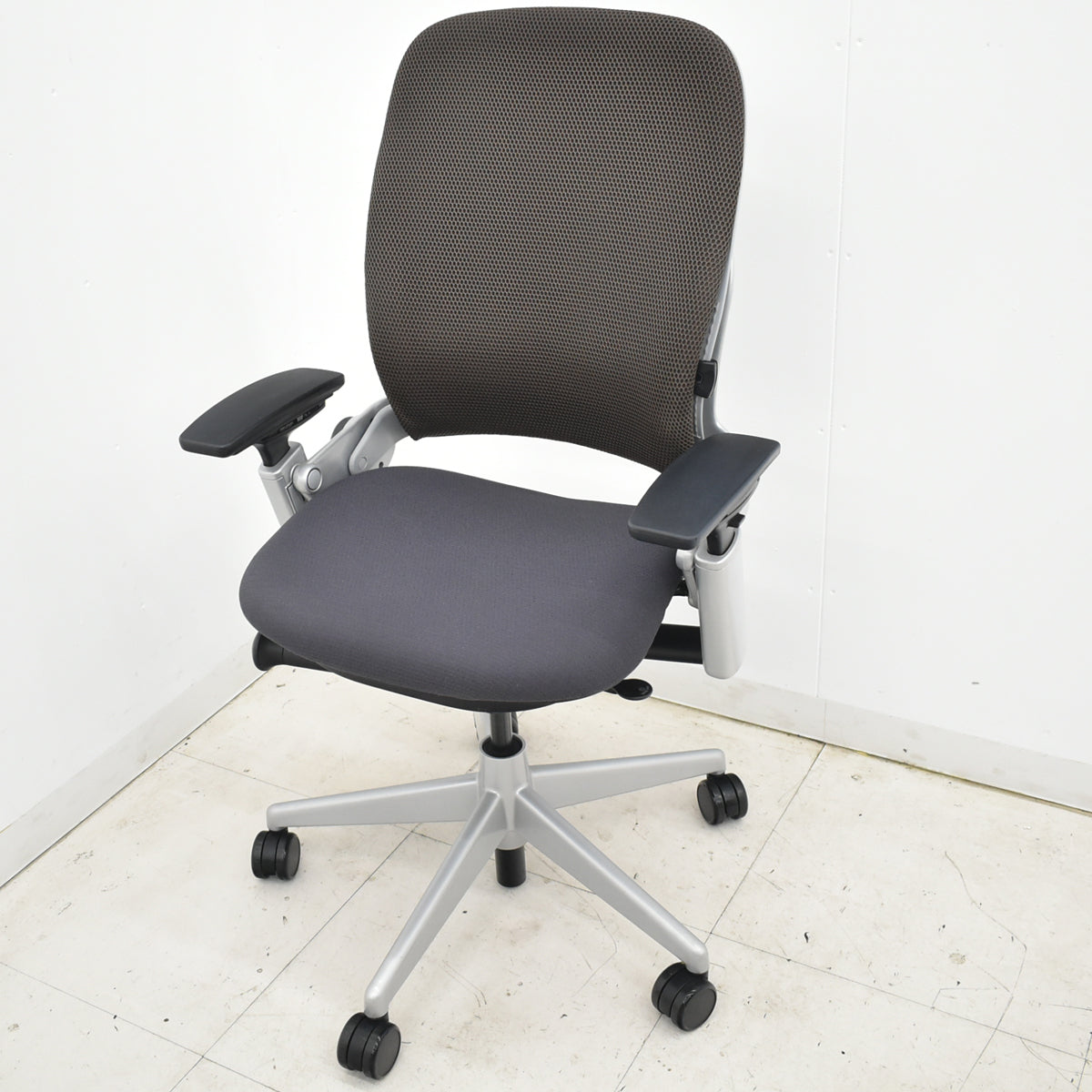 【中古】スチールケース リープ V2 3Dニット プラチナフレーム USモデル ランバーサポート 可動肘(新型肘パット)USモデル 2021080401【中古オフィス家具】