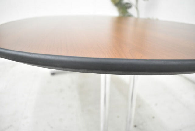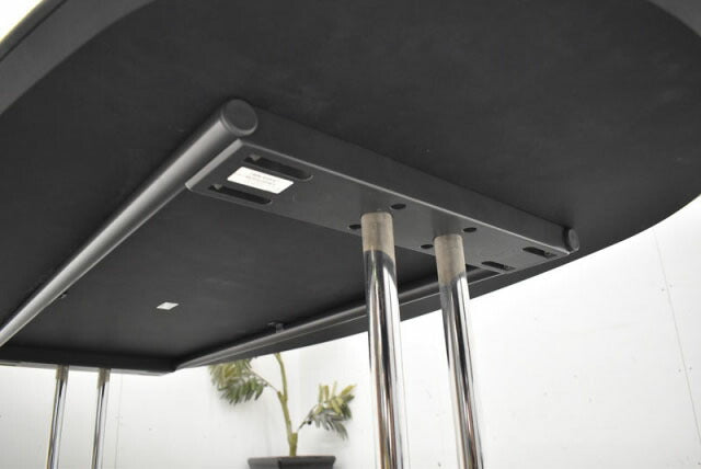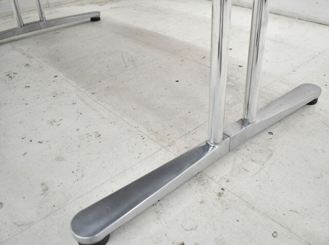 | 天板/表面材:メラミン化粧板 縁材:樹脂成型品 天板厚:30mm 支柱/スチールパイプクロームメッキ仕上 脚/アルミダイキャスト |