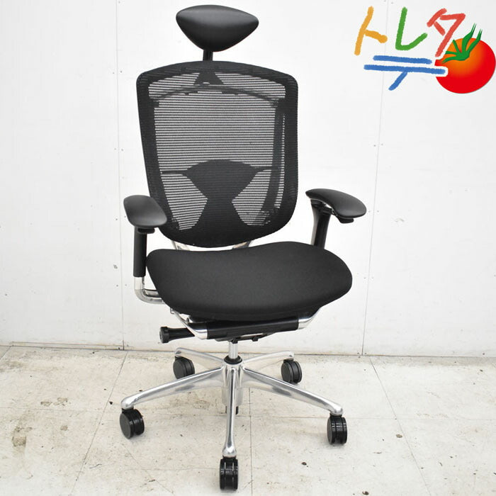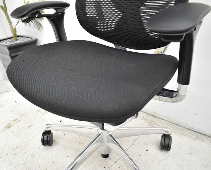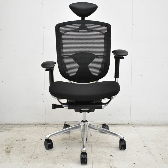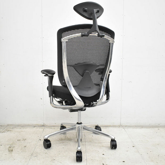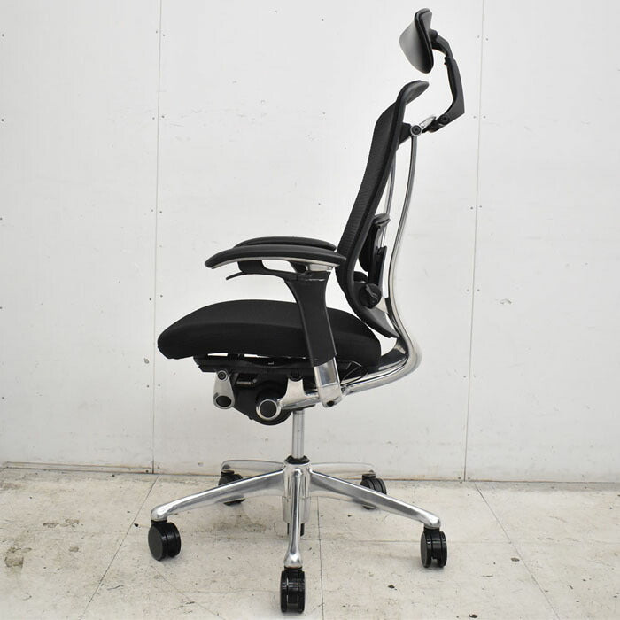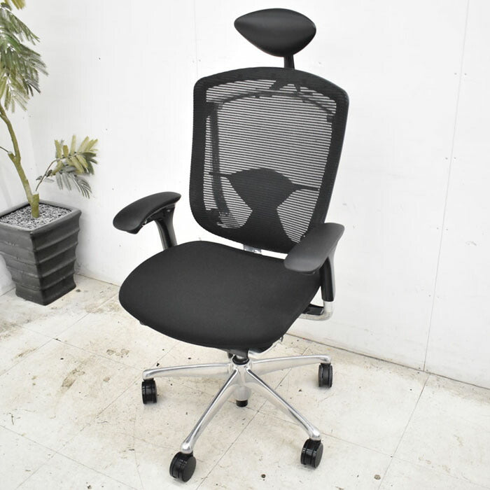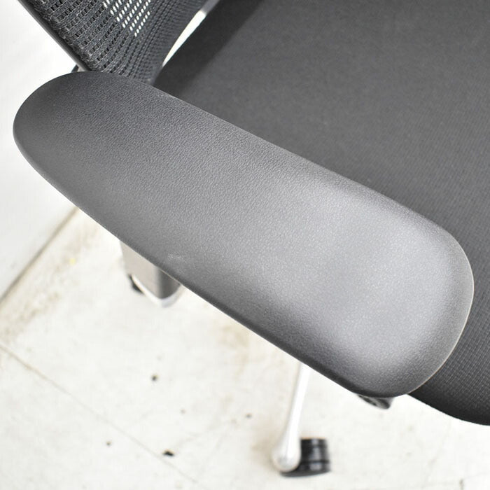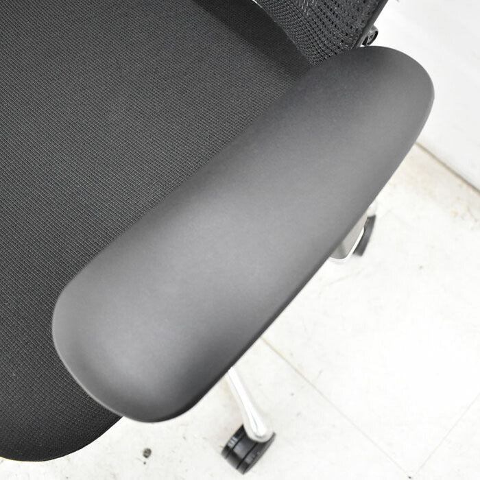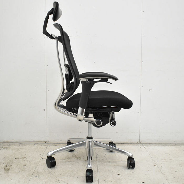 オカムラ コンテッサ ヘッドレスト 可動肘(新型肘パット)ランバーサポート アルミポリッシュ脚 2023040702【中古オフィス家具】【中古】