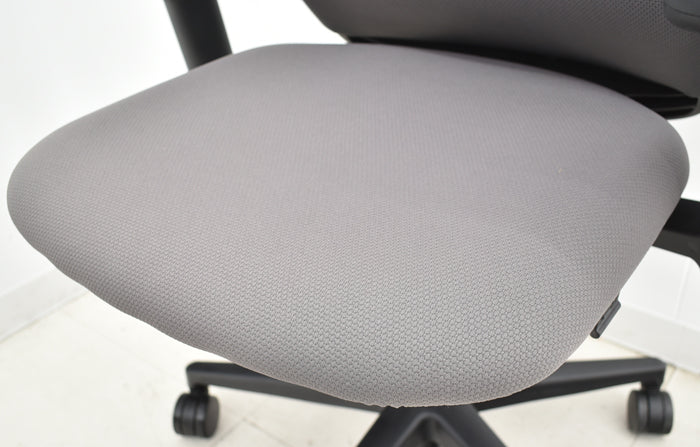 小柄な人でも背もたれを活用しやすいよう、シートの奥行きサイズをコンパクトに設計。着座時に太ももを必要以上に圧迫することを避けられ、血流促進など健康にも配慮しています。また、シート下方のリクライニングメカもコンパクトに抑え、足元のゆとりを感じられ、軽やかな座り心地です。