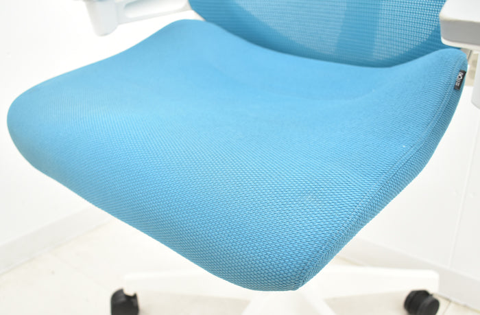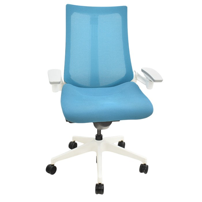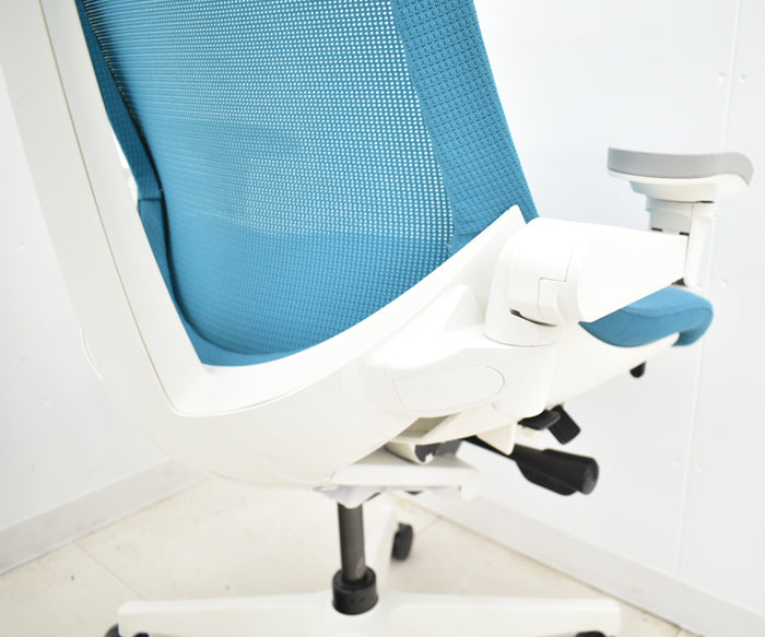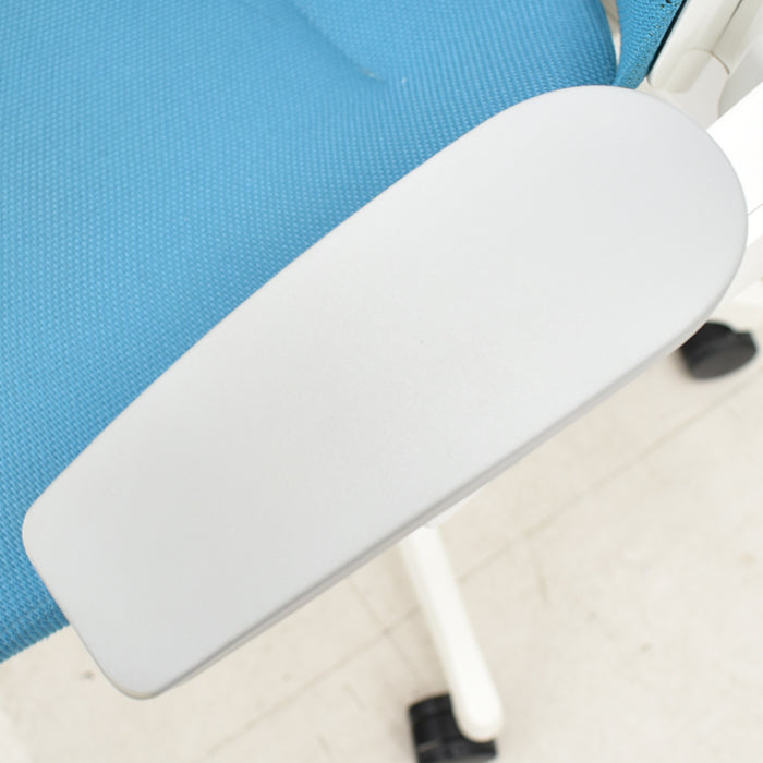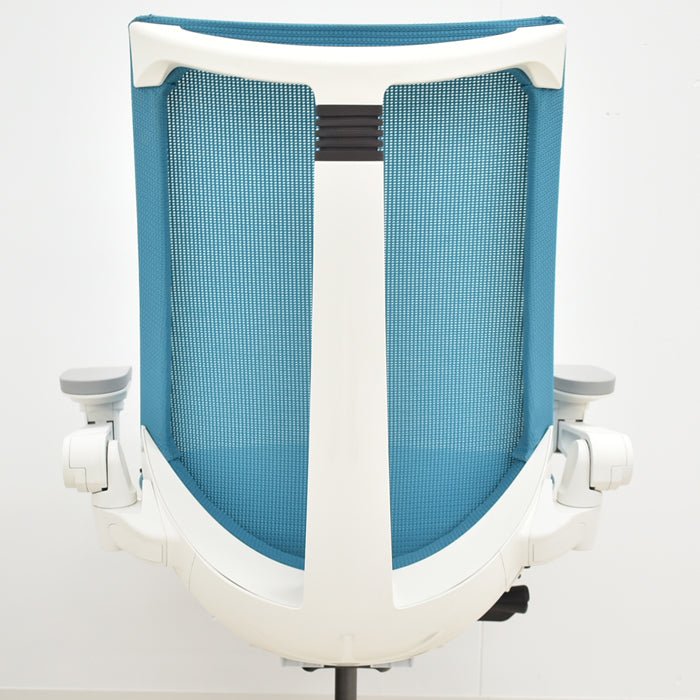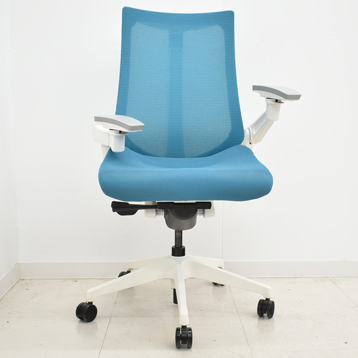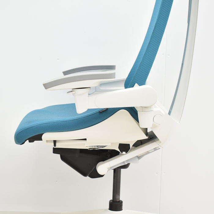 背支柱に備えたピボット構造により、肩の回転にしなやかに追従し、集中からリフレッシュまでフレキシブルに身体の動きをサポートします。アンクルムーブ・シンクロロッキングを備え、くるぶしを支点に背と座の角度が連動して傾き、背の最後傾角度は20°まで可能です。またロッキングの角度を5か所で固定できるシートアングルストッパー付です。サイドフレームレスの背は、上半身の動きをストレスなく受け止め、肌あたりも柔らかで、長時間の作業時も快適性を保ってくれます。バックレストはセンターの支柱と上部のフレームで支え、両サイドはサイドフレームレス仕様。スマートな新感覚のデザインです。伸縮性の高いメッシュ素材により、腰から背中までしなやかにフィットし、ソフトにホールド。通気性もよく、見た目も軽やかです。肘当ては、4Dリンクアームを採用。ワンアクションで肘位置が瞬時に定まり、調節するストレスから解放され、常に最適な肘位置をキープできます。座る姿勢や身体の動きにフレキシブルに対応し、快適にサポートしてくれる事務椅子です。