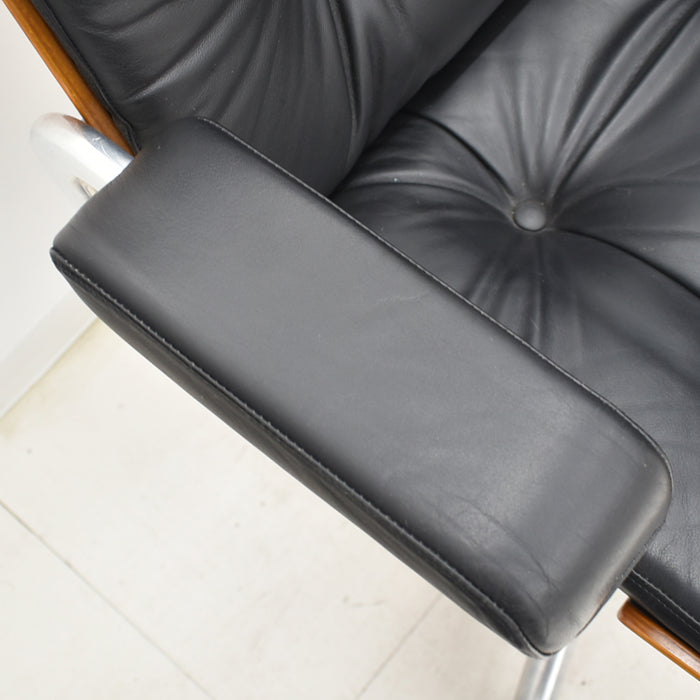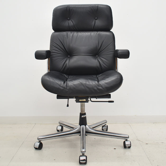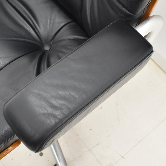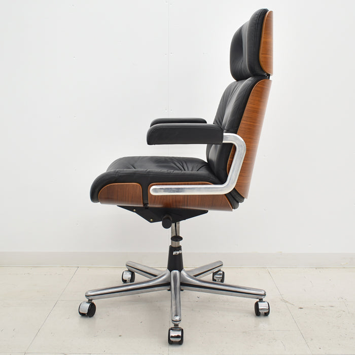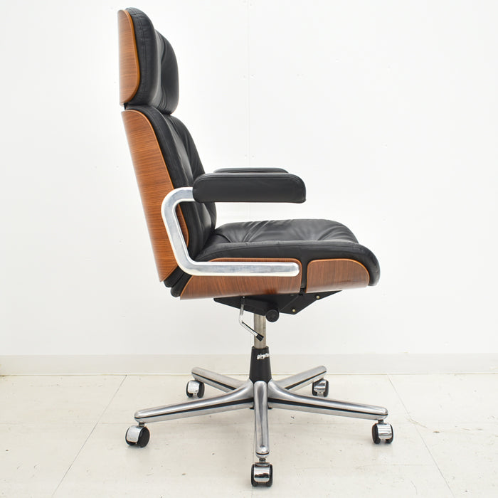 【中古】ジロフレックス パサール ハイバック 固定肘 プライウッド 革張り ブラック 2024072302【中古オフィス家具】