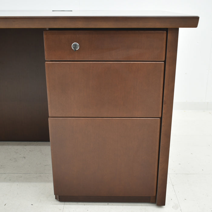 オカムラのネーベクスプロ・役員用両袖デスクです。ブラウンカラーで応接室や役員室などに重厚感がありながらも明るい印象を与えます。