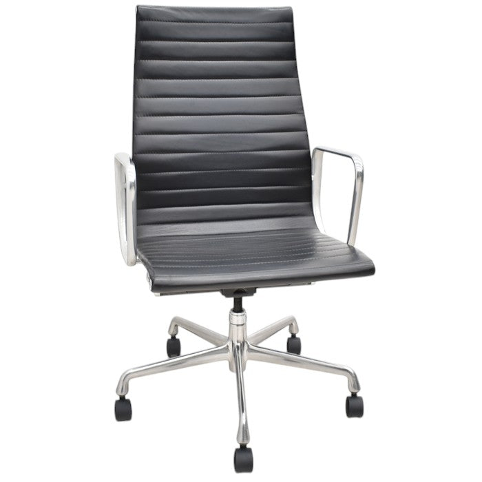 【中古】ハーマンミラー イームズ アルミナムグループチェア ポリッシュ 革張り 2025032606【中古オフィス家具】
