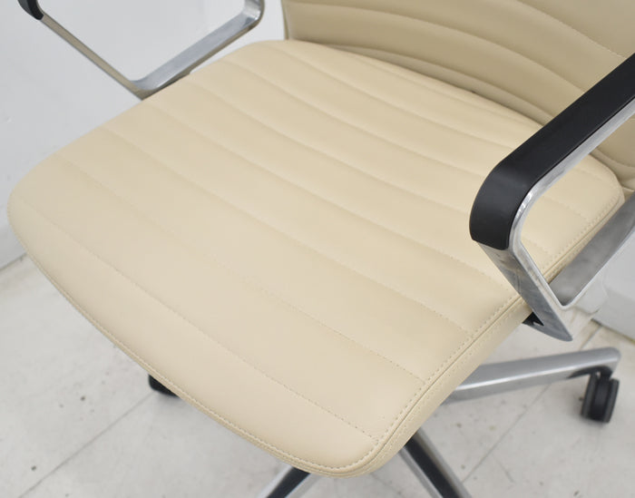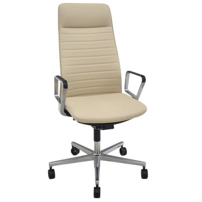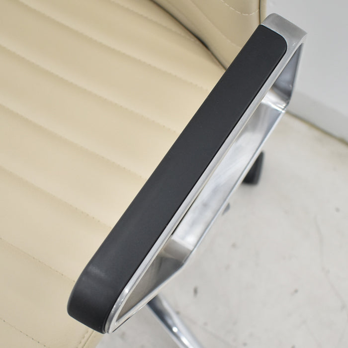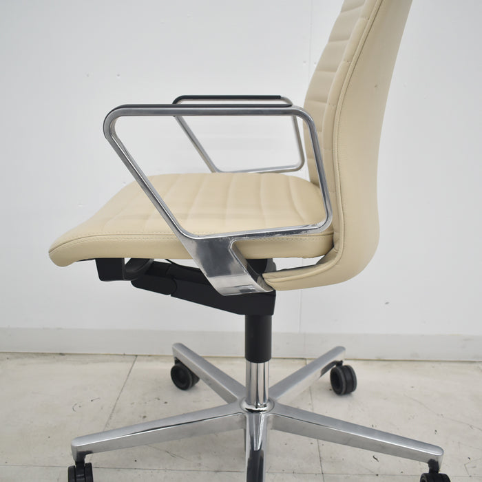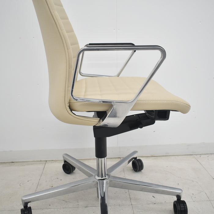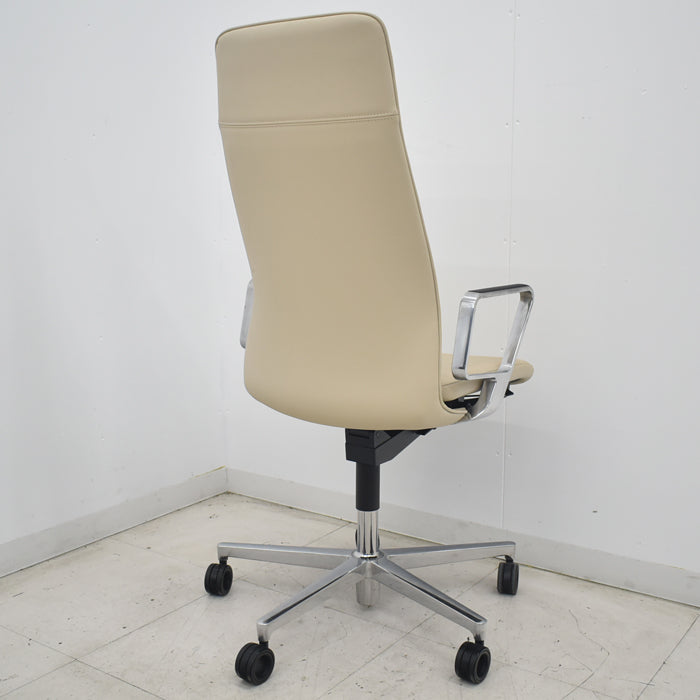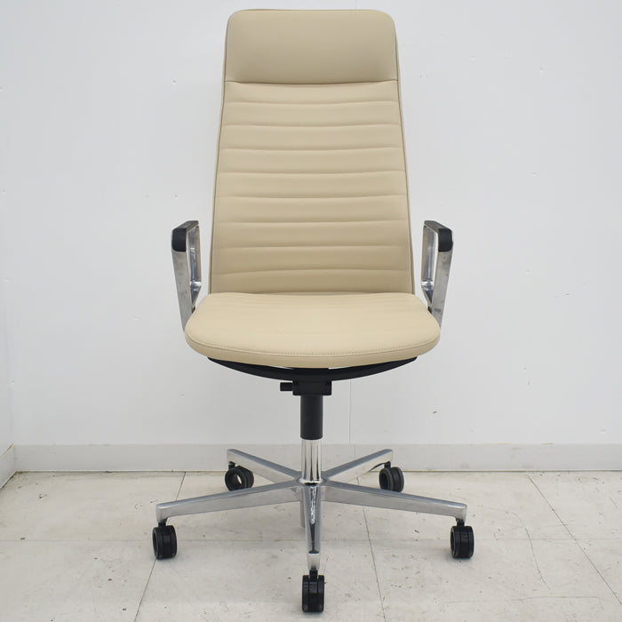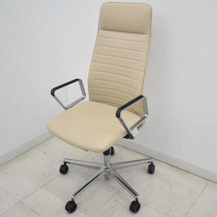 【中古】コクヨ ファブレ アディショナルバック 革張り アルミサークル肘 ポリウレタン巻きキャスター ストライプバック 2022年製 2025070801【中古オフィス家具】