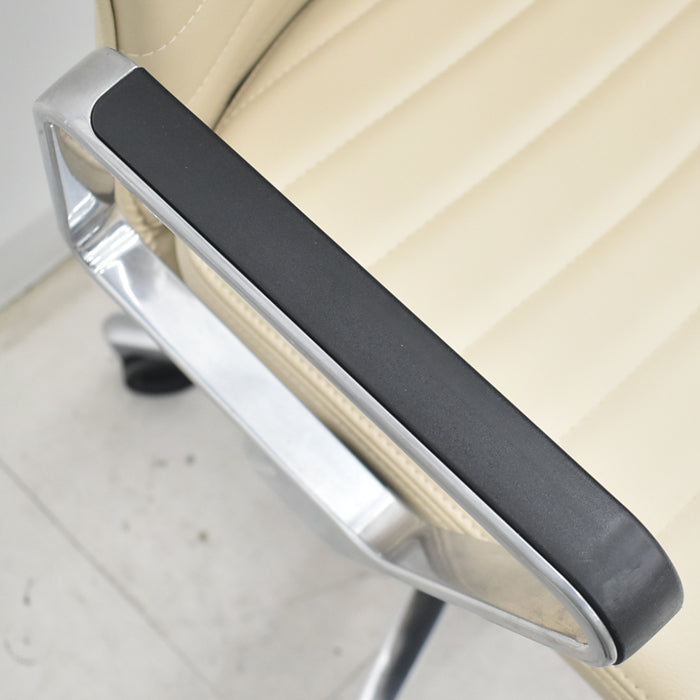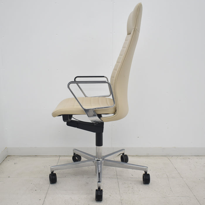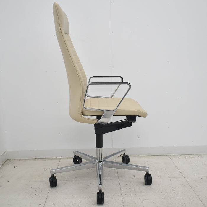 | ■素材 仕様 | 脚素材:アルミダイカスト / キャスター:ポリウレタン巻きキャスター 背/背フレーム:強化ナイロン 背板:ポリプロピレン クッション:スラブウレタン 張地:本革(表面)、ビニールレザー(裏面) 座/座フレーム:強化ナイロン、クッション:モールドウレタン 張地:本革(表面)、ビニールレザー(裏面)、ポリエステル弾性メッシュ 肘/アルミサークル肘:アルミダイカスト、ポリプロピレン 脚/脚羽根:アルミダイカスト、キャスター:Ф65㎜ |