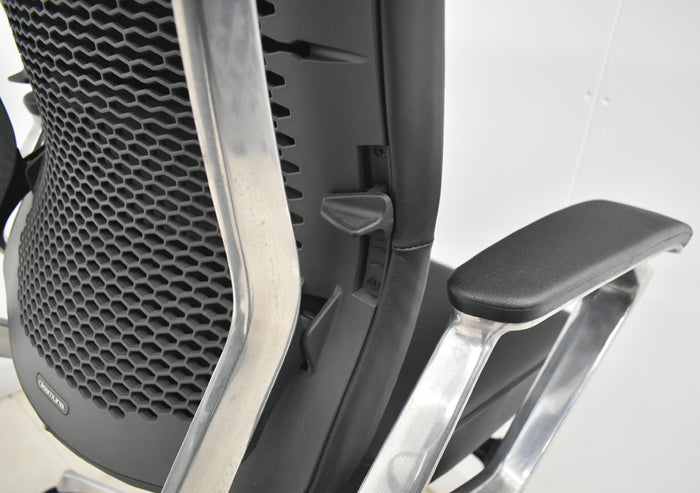 【中古】オカムラ デューク エクストラハイバック 可動ヘッドレスト 固定肘 アルミポリッシュ ランバーサポート 革張り 2025073104【中古オフィス家具】