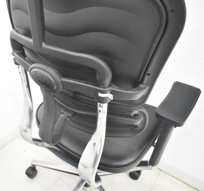 【中古】エルゴヒューマン ベーシック 可動肘 ヘッドレスト ポリッシュ 革張り 2025080801【中古オフィス家具】