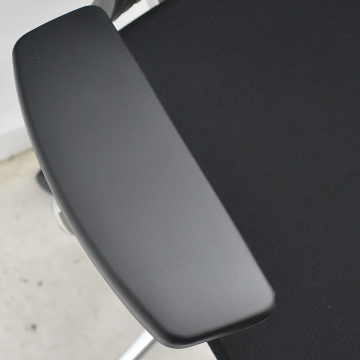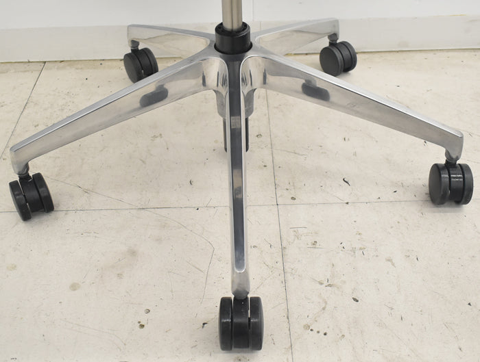■素材 仕様 | 背:エラストマー 座:クッション布張り 背ブラケット:アルミダイキャストミラー仕上 肘当て:エラストマー樹脂+ウレタン 肘受け:アルミダイキャストミラー仕上 脚:アルミダイキャストミラー仕上、ナイロン双輪キャスター付 |