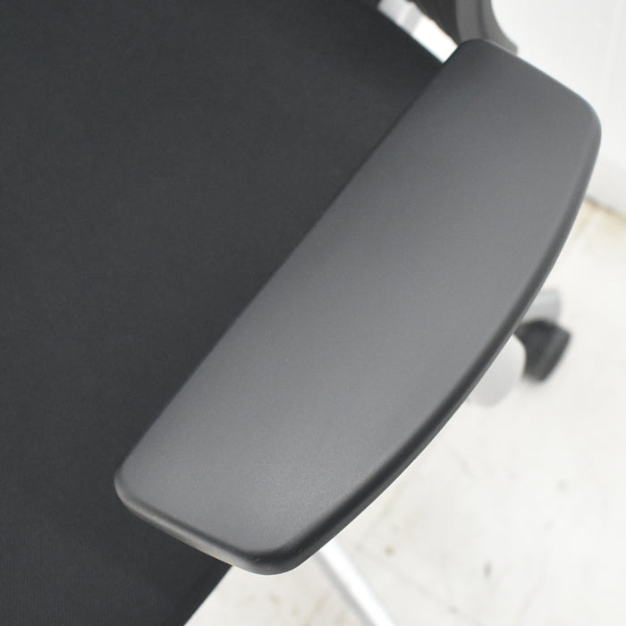 ■素材 仕様 | 背:エラストマー 座:クッション布張り 背ブラケット:アルミダイキャストミラー仕上 肘当て:エラストマー樹脂+ウレタン 肘受け:アルミダイキャストミラー仕上 脚:アルミダイキャストミラー仕上、ナイロン双輪キャスター付 |