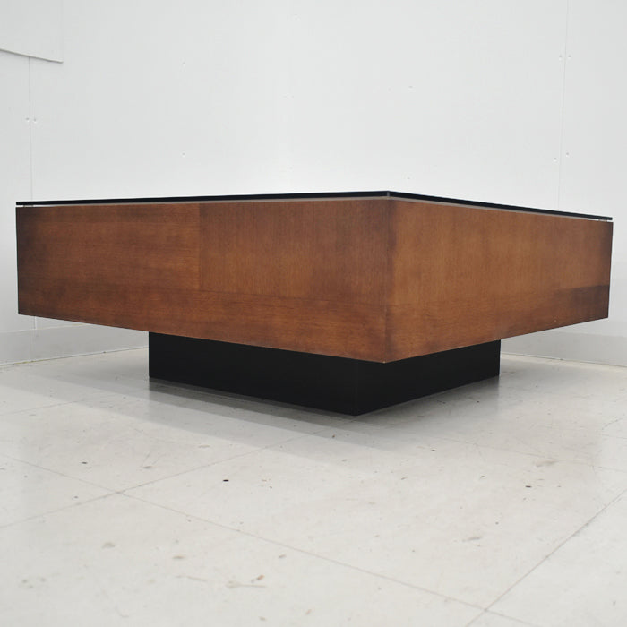 【中古】メーカー不明 センターテーブル(ローテーブル)ガラス(ブラック)天板付 幅360 2025082708【中古オフィス家具】