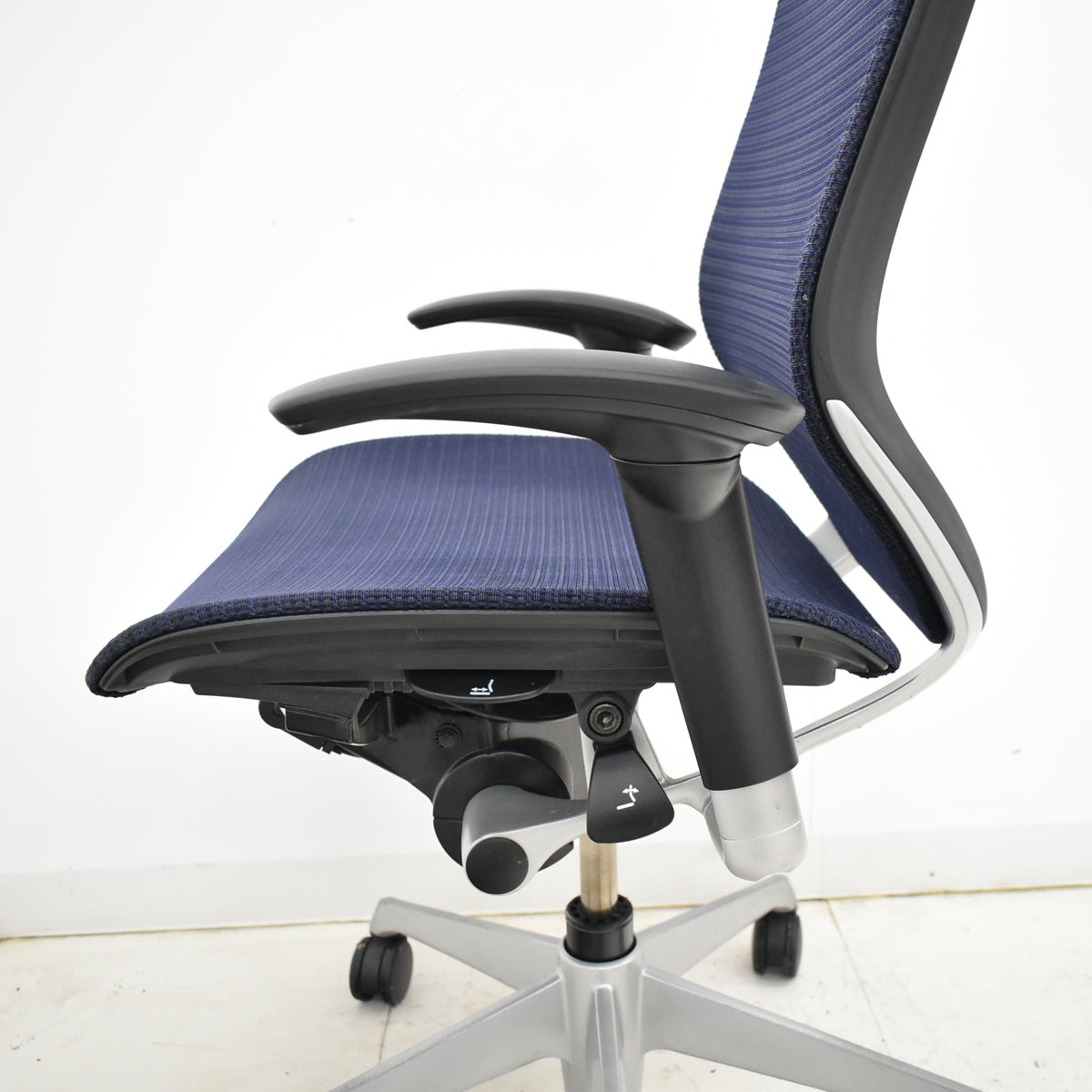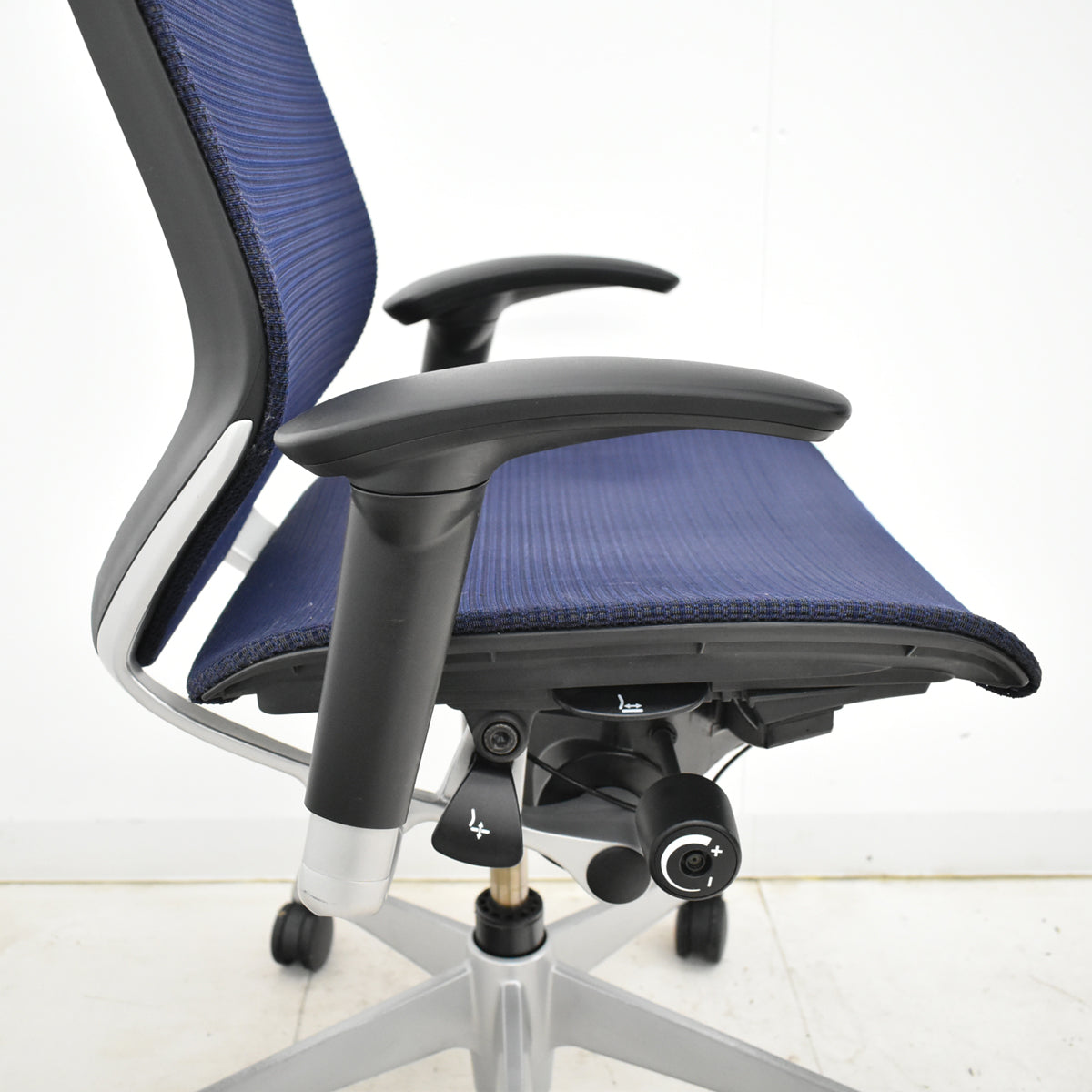 オカムラのバロンです。 オフィスシーティングは、先進のワークスタイルへ。 先進のエルゴノミクスが生み出す快適な座り心地。あらゆるオフィスシーンに美しく生えるシンプル&シャープなデザイン。イタリア・ジウジアーロデザインとオカムラのコラボレーションから生まれました。 世界から認められたテクノロジーを受け継ぎ、最新のビジネスニーズに幅広く応える先進のメッシュチェアシリーズです。 『Baron』シリーズの座り心地を高めるもう一つの特徴、それは快適なリクライニング性です。くるぶしを始点にした独自のリクライニング機能は、PC操作に伴うワーカーの後傾の動きにも自然に追従します。さらに座面の高さとリクライニング角度等を無理ない自然な着座姿勢のまま調整できるなど、操作性の点でも格別の遣いやすさに配慮しています。 リクライニング(最大23°)は、左レバー操作により、フリーロッキング及びお好みの角度での固定が可能です。 リクライニングの強弱は無段階で調整が可能。美技手を自然に下ろした位置にあるダイヤルでお好みの強度に調整できます。 座面のすぐ未時下にあるレバーの操作により、座面位置の上下調整(130mm)が可能です。 アジャストアームはラチェット式で、座わったままの姿勢で軽く持ち上げるだけで高さ調節(100mm)が可能です。 アジャストアームのパッドは90°(内60°:2段階 外30°)の角度調節が可能。コンピュータでの操作時などに肘全体を優しくサポートします。 座面の前後スライド調整(前後50mm)は、両手で自然に下ろした位置にあるレバーで簡単に操作できます。 快適で透明感のあるメッシュ素材を使用した背は背中をゆったりとサポートするサイズです。 長時間の作業における疲労の軽減を追及し、新開発のメッシュ素材を採用。 ※昇降ガスが少々弱くなっています(60kg程度の人が座った場合、通常よりも沈み幅が20mm程度大きくなっています)。座ったり立ったりする際にグググと少々引っかかるような動きがあります。 ※座面メッシュに小さなダメージが一か所あります。 ※脚部分にスレ、キズなどあります。 ※肘パッド新品に交換済です。 建物内への搬入作業や梱包残材の回収をご希望される場合は、アートセッティングデリバリー(家財おまかせ便)でのお届けで対応可能です。 アートセッティングデリバリー(家財おまかせ便)でのお届けの場合の送料はお見積りとなります。 ご注文前にお見積りすることも可能ですし、ご注文時やご注文後にその旨ご希望いただければ対応させていただきますのでお申し付けください。 クリーニングとメンテナンスをしっかり行ってお届けします。 この商品の程度は中古品として美品といえます。 多少の擦れや傷はあるものの気になる程ではないでしょう。 御使用端末の環境により多少画像の表示色と実物の色に差違が生じる場合がございますのでご了承ください。 |