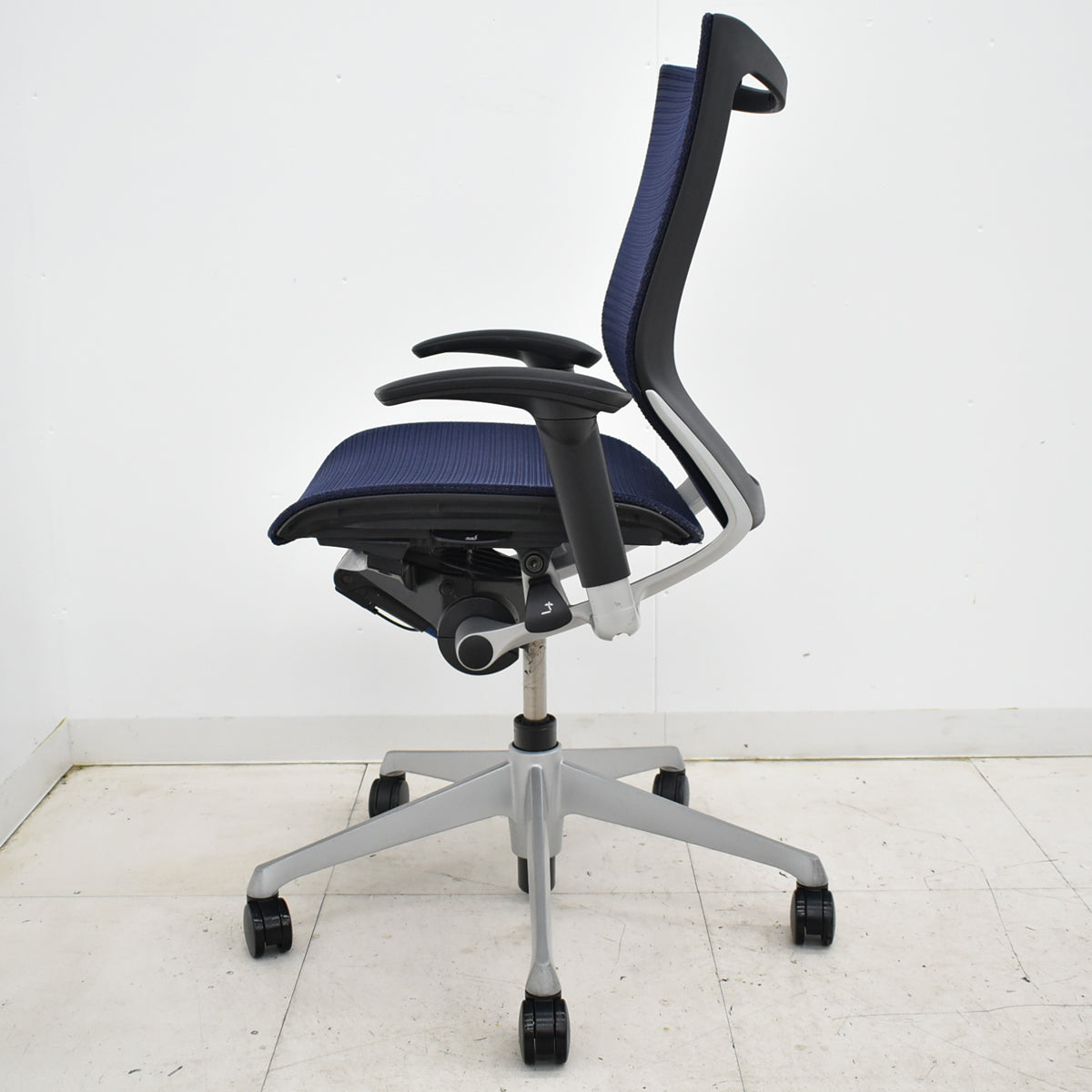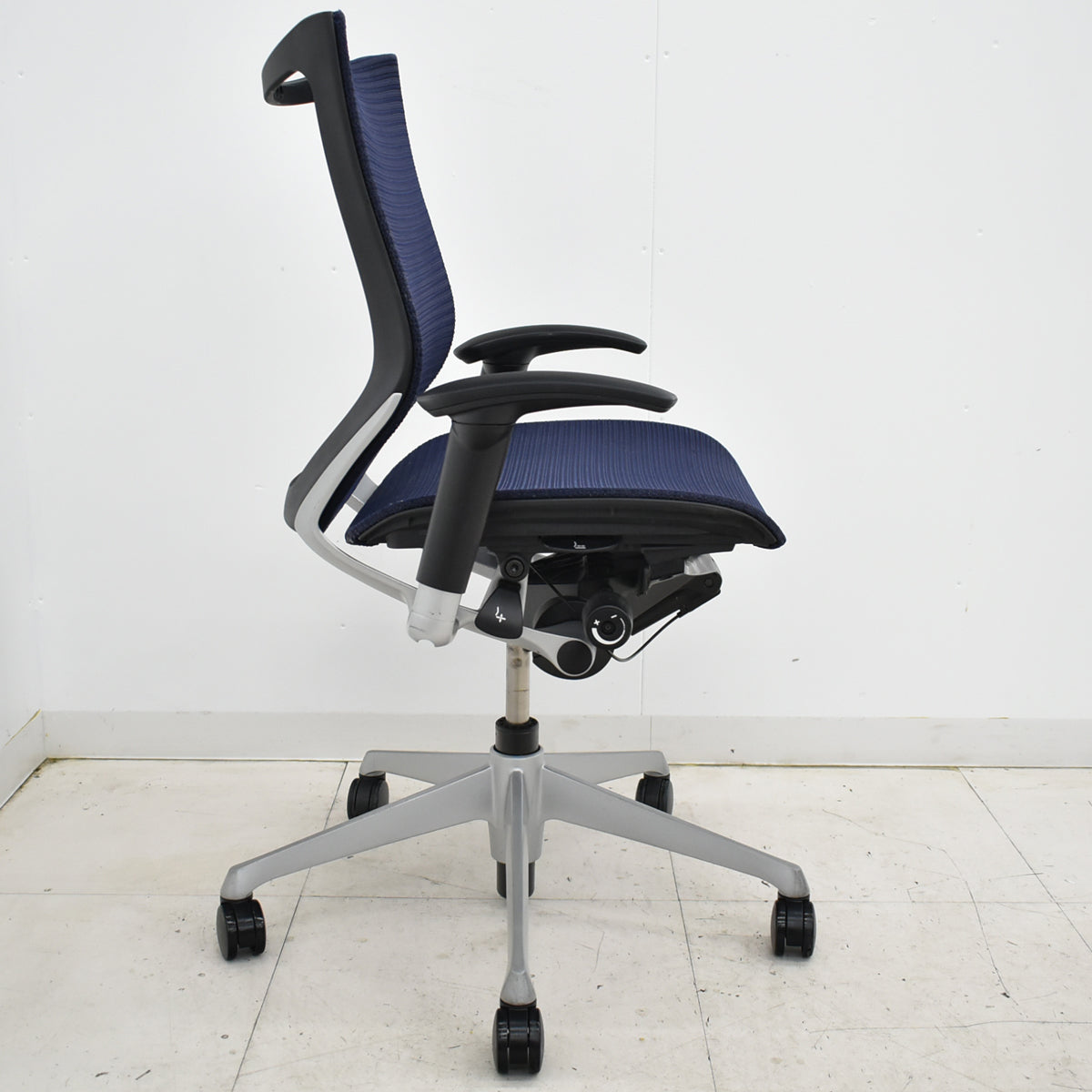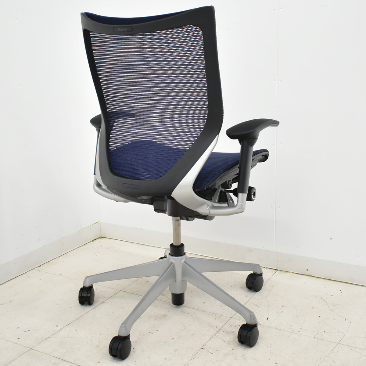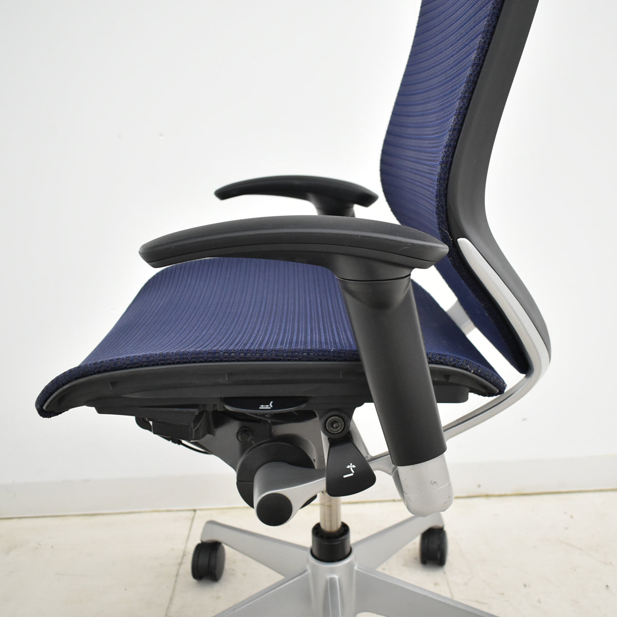 【中古】オカムラ バロン ローバック 可動肘 シルバー脚 肘パッド新品 ダークブルー 2025092201【中古オフィス家具】