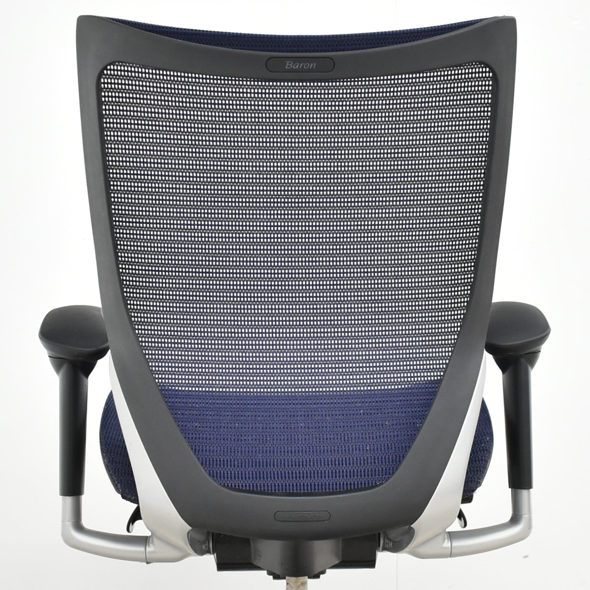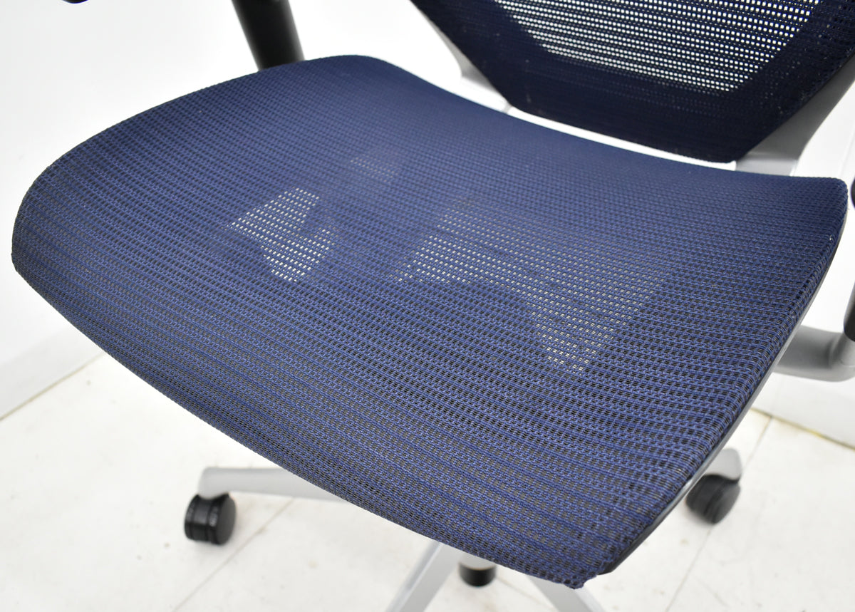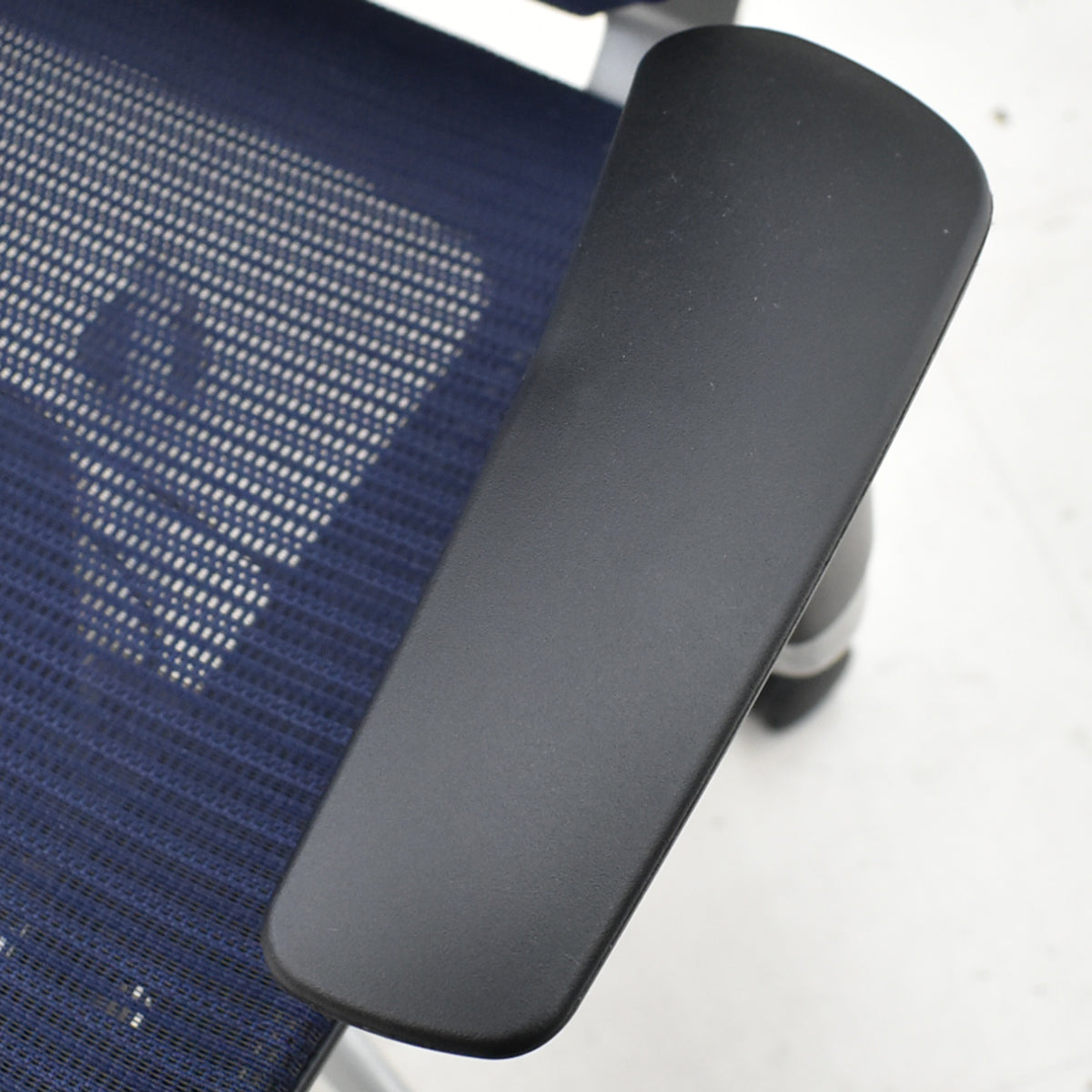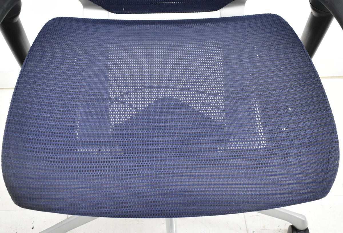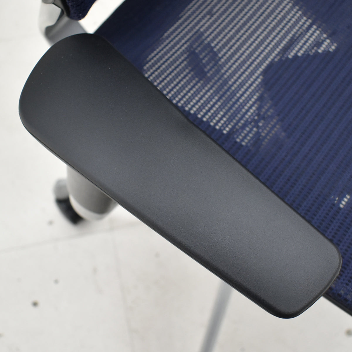 【中古】オカムラ バロン ローバック 可動肘 シルバー脚 肘パッド新品 ダークブルー 2025092201【中古オフィス家具】