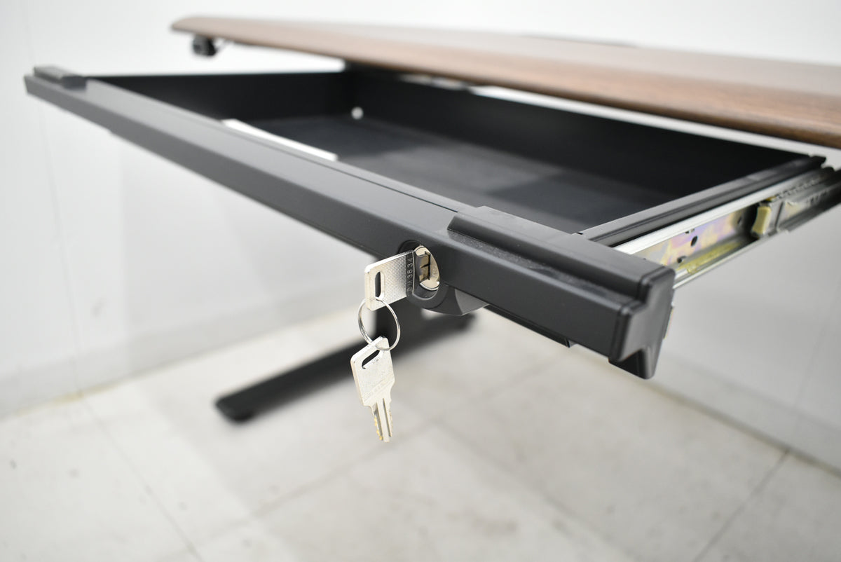 スイフト オカムラ 中古 電動 昇降 デスク 上下 天板 電動昇降 okamura 岡村 製作所 swift 平机 平デスク おすすめ 木目 ブラック 塗装 配線機能 オフィス 自宅 書斎