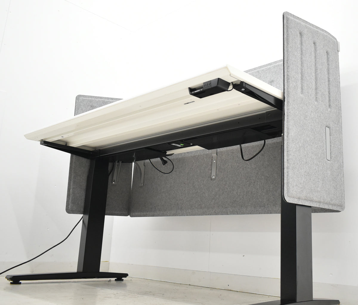 【中古】オカムラ スイフト 電動昇降デスク デスクトップパネル(フェルト)レバータイプ(インジケーター、メモリー機能付)マルチコンセントユニット2個 幅1385 2025092902【中古オフィス家具】