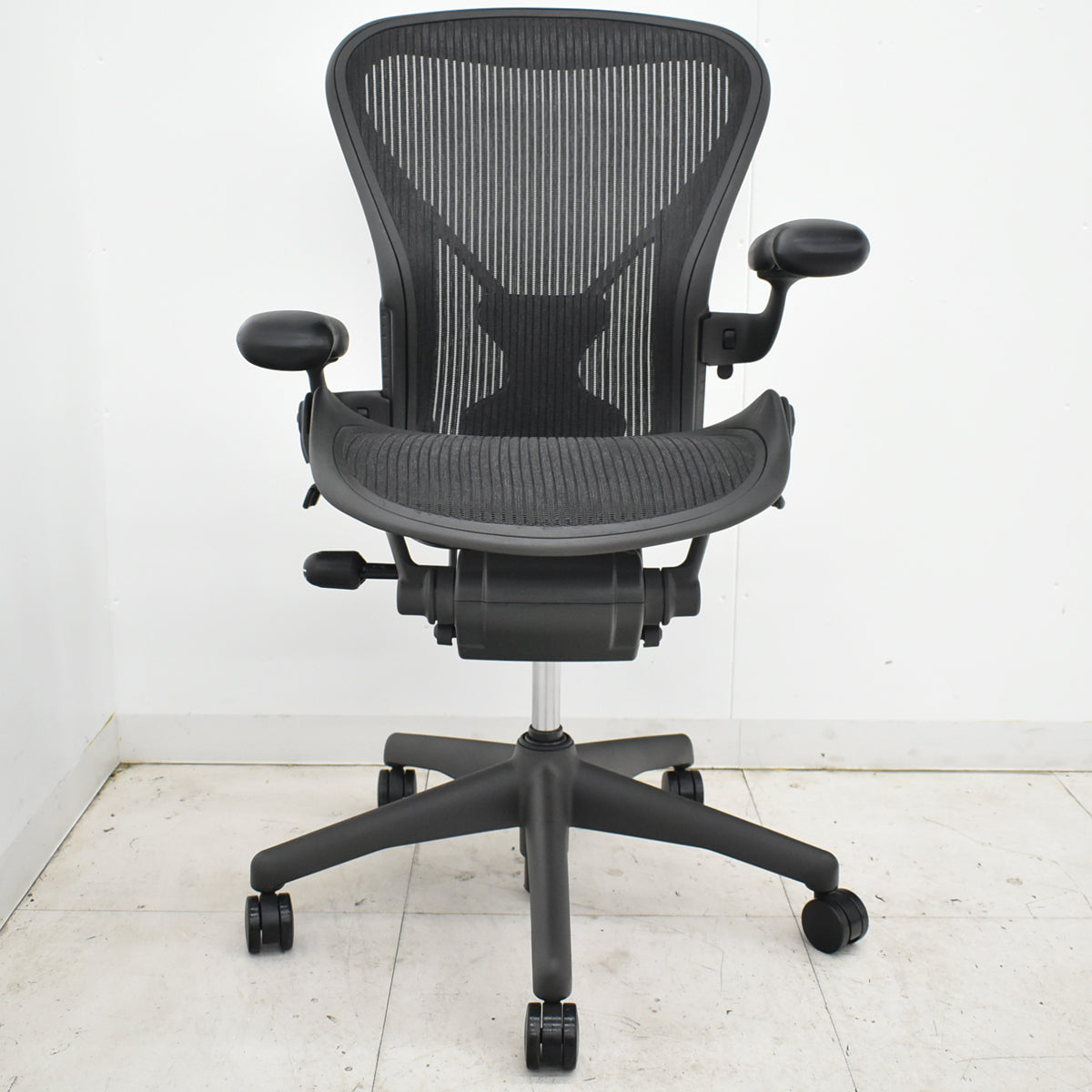 【中古】ハーマンミラー アーロンチェア Bサイズ フル装備 ポスチャーフィット 肘レバータイプ 昇降ガス新品交換済 2025102803【中古オフィス家具】