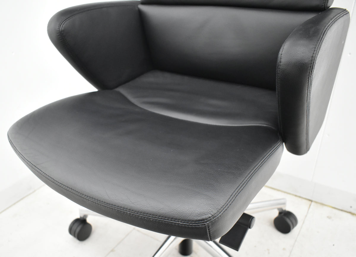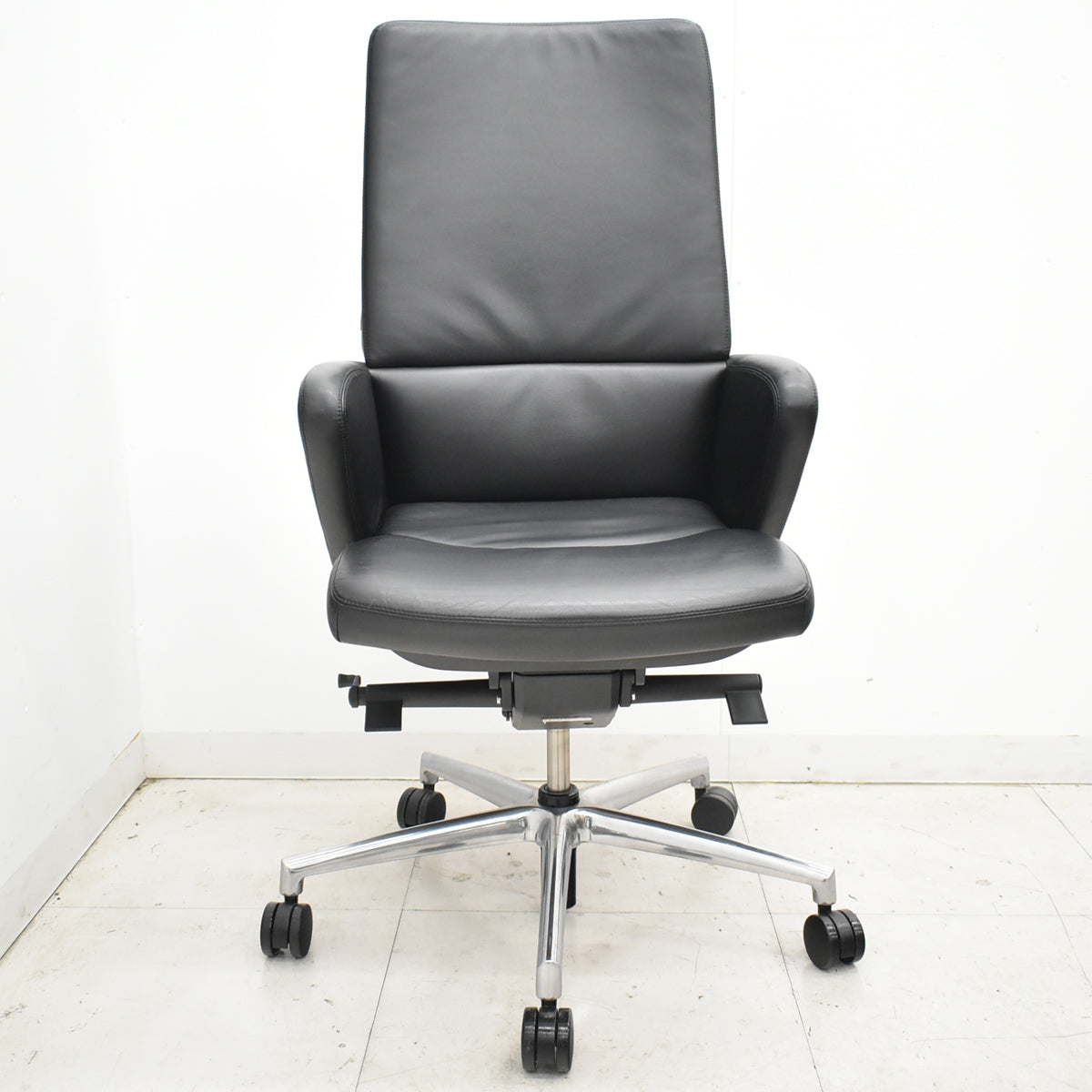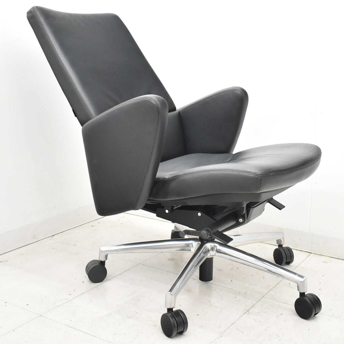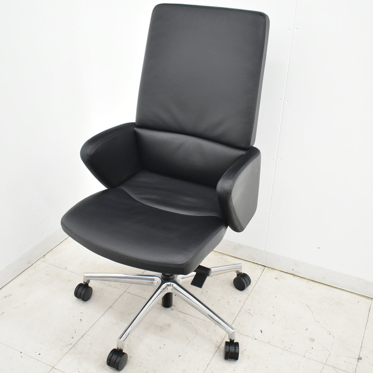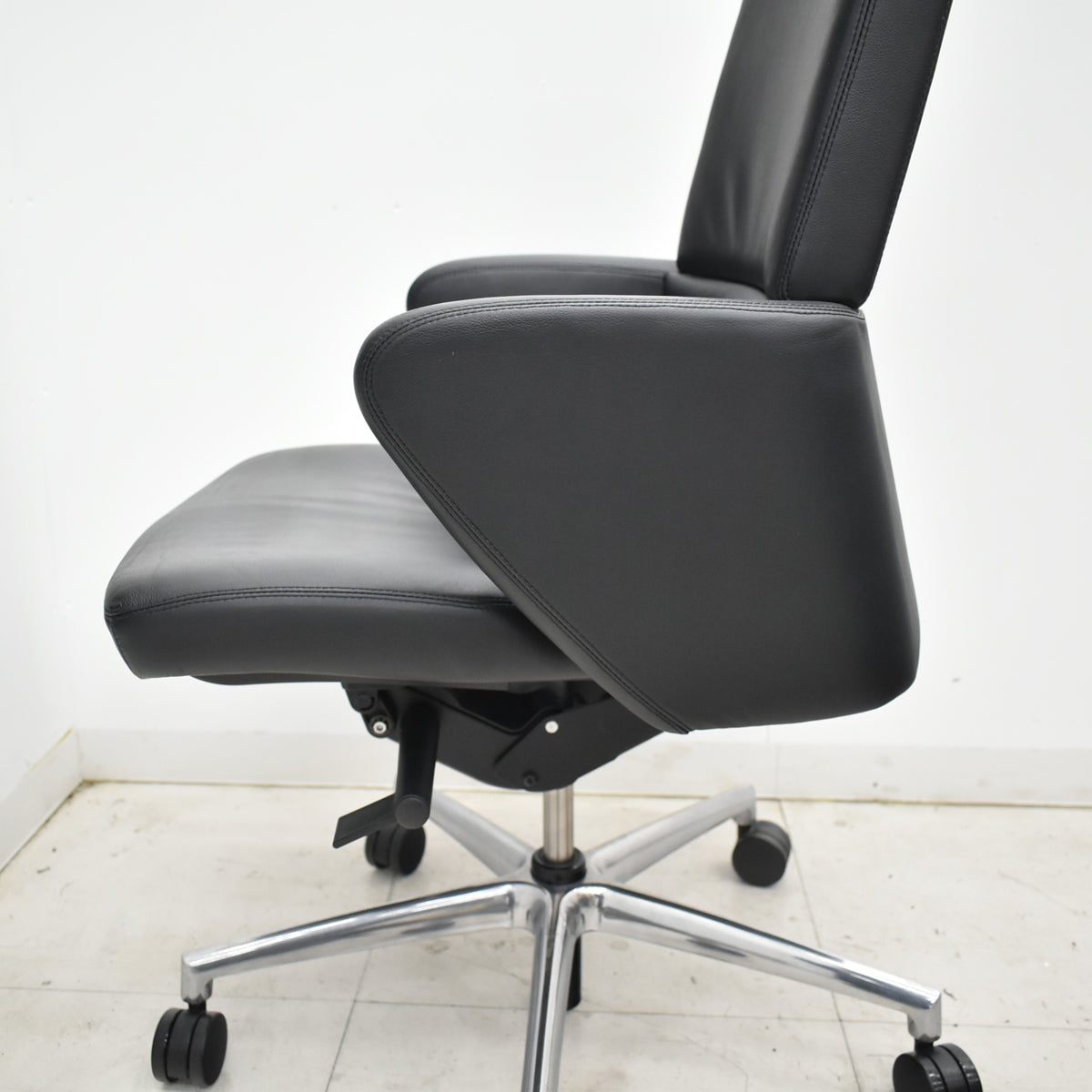 【中古】オカムラ セフィーロ エグゼクティブチェア 総革張り 固定肘 ポリッシュ 2025110402【中古オフィス家具】
