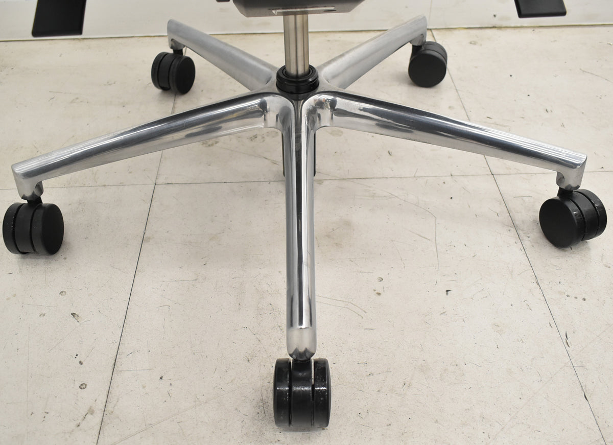 | ■素材 仕様 | 革張り キャスター:ナイロン【カーペット向け】 座芯材/PP成型品 支基/シンクロリクライニングメカ 脚/アルミダイキャストポリッシュ仕上 脚外径:Φ653mm キャスター/Φ60mmナイロン双輪キャスター 脚端/ABS樹脂ブラック色 |