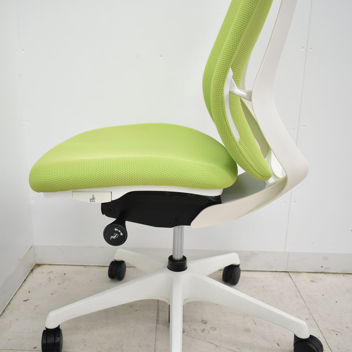 オカムラのシルフィーチェアです。 グッドデザイン賞やレッドドットデザイン賞など数々の賞を受賞しています。身体と背もたれとのフィット感を向上させる今までにない新感覚オフィスチェアです。 座る人の好みに合わせて、背もたれのカーブを2段階で変えられる「バックカーブアジャスト機構」を採用しました。オフィスで働くひとりひとりのカラダに合わせて、まるで手を添えて包み込まれるような優しい座り心地を実現しました。 腰にふれる背もたれのカーブの緩急を調節することで、体格や好みに合わせて背もたれをフィットさせることができます。 さらに背もたれのフレームが2重構造になっていて、外側のフレームは多様な体格の人が座ってもしっかりと支える強度を保ち、背中に当たるフレームはからだになじむように柔軟性をもたせています。 その結果、作業中の圧迫感も少なく長時間の座り仕事もしっかりサポートします。 硬さの異なる3種類のウレタンを一体成型。前方は太ももを圧迫しないように柔らかく、中央はお尻を包み込むようにやや硬く、後方はからだを支えるために硬くなっています。 直立と後傾のリクライニングに加えて、パソコン・筆記作業に適した前傾姿勢をとることができます。座面と背もたれが前に傾くことで、おなかの圧迫が解消され腰の負担も軽減されます。 ●機能 バックカーブアジャスト機構 背の両サイドにあるレバーを下の位置にすると緩やかなカーブになり、大柄な人にフィットします。レバーを上に持ち上げると狭いカーブになり、小柄な人にフィットします。 ●前傾機能付 背座シンクロリクライニング 座面左下のダイヤルでリクライニングの固定と解除が行えます。背と座はシンクロしてリクライニングし、従来の直立から後傾までのリクライニングに加え、パソコン作業や筆記作業時の前傾姿勢をサポートする「前傾ポジション」をとることが可能です。リクライニング範囲は、直立~後傾で23°、直立~前傾で10°です。リクライニングの固定は4段階です。 ●リクライニングの強弱調節 座面右下のダイヤルでリクライニングの強弱調節が行えます。これまでのダイヤル式よりも、少ない回転数で最弱~最強の調節が可能です。 ●座面の高さ調節 座面の右下にあるレバーを持ち上げることで、座面の高さ調節が可能です。(ストローク:100㎜) ●座面の奥行き調節 座面の左にあるレバー操作により、座面の奥行き調節が可能です。(ストローク:50mm) ●アジャストアームの調節(可動肘付タイプのみ) 肘パッド裏にあるボタンを押すことで、高さの調節が可能(ストローク:100㎜)。また、肘パッドは前後に50㎜、内側に20°、外側に20°動かすことができます。 建物内への搬入作業や梱包残材の回収をご希望される場合は、アートセッティングデリバリー(家財おまかせ便)でのお届けで対応可能です。 アートセッティングデリバリー(家財おまかせ便)でのお届けの場合の送料はお見積りとなります。 ご注文前にお見積りすることも可能ですし、ご注文時やご注文後にその旨ご希望いただければ対応させていただきますのでお申し付けください。 クリーニングとメンテナンスをしっかり行ってお届けします。 この商品の程度は中古品として美品といえます。 多少の擦れや傷はあるものの気になる程ではないでしょう。 御使用端末の環境により多少画像の表示色と実物の色に差違が生じる場合がございますのでご了承ください。 |