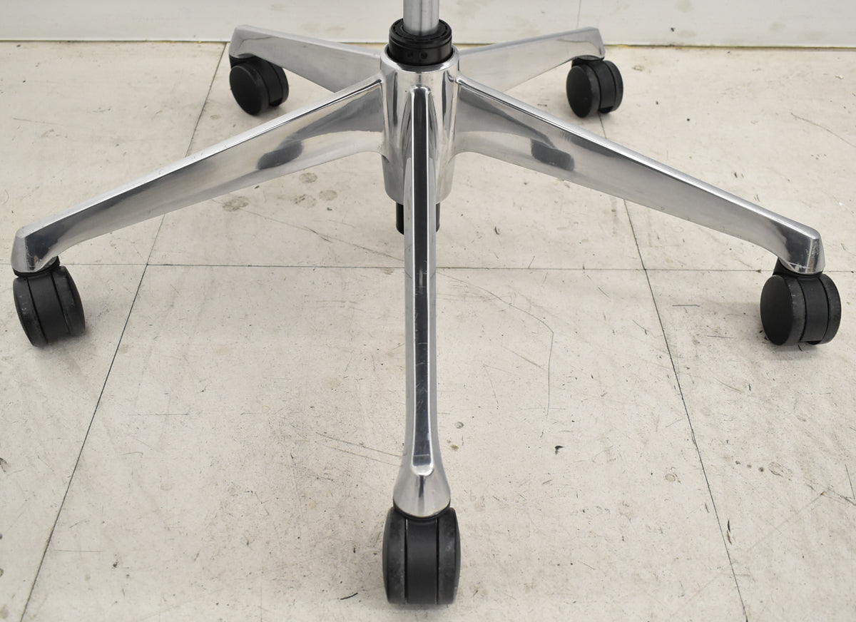 オカムラのシルフィーチェアです。 グッドデザイン賞やレッドドットデザイン賞など数々の賞を受賞しています。身体と背もたれとのフィット感を向上させる今までにない新感覚オフィスチェアです。 座る人の好みに合わせて、背もたれのカーブを2段階で変えられる「バックカーブアジャスト機構」を採用しました。オフィスで働くひとりひとりのカラダに合わせて、まるで手を添えて包み込まれるような優しい座り心地を実現しました。 腰にふれる背もたれのカーブの緩急を調節することで、体格や好みに合わせて背もたれをフィットさせることができます。 さらに背もたれのフレームが2重構造になっていて、外側のフレームは多様な体格の人が座ってもしっかりと支える強度を保ち、背中に当たるフレームはからだになじむように柔軟性をもたせています。 その結果、作業中の圧迫感も少なく長時間の座り仕事もしっかりサポートします。 硬さの異なる3種類のウレタンを一体成型。前方は太ももを圧迫しないように柔らかく、中央はお尻を包み込むようにやや硬く、後方はからだを支えるために硬くなっています。 直立と後傾のリクライニングに加えて、パソコン・筆記作業に適した前傾姿勢をとることができます。座面と背もたれが前に傾くことで、おなかの圧迫が解消され腰の負担も軽減されます。 ●機能 バックカーブアジャスト機構 背の両サイドにあるレバーを下の位置にすると緩やかなカーブになり、大柄な人にフィットします。レバーを上に持ち上げると狭いカーブになり、小柄な人にフィットします。 ●前傾機能付 背座シンクロリクライニング 座面左下のダイヤルでリクライニングの固定と解除が行えます。背と座はシンクロしてリクライニングし、従来の直立から後傾までのリクライニングに加え、パソコン作業や筆記作業時の前傾姿勢をサポートする「前傾ポジション」をとることが可能です。リクライニング範囲は、直立~後傾で23°、直立~前傾で10°です。リクライニングの固定は4段階です。 ●リクライニングの強弱調節 座面右下のダイヤルでリクライニングの強弱調節が行えます。これまでのダイヤル式よりも、少ない回転数で最弱~最強の調節が可能です。 ●座面の高さ調節 座面の右下にあるレバーを持ち上げることで、座面の高さ調節が可能です。(ストローク:100㎜) ●座面の奥行き調節 座面の左にあるレバー操作により、座面の奥行き調節が可能です。(ストローク:50mm) ●アジャストアームの調節(可動肘付タイプのみ) 肘パッド裏にあるボタンを押すことで、高さの調節が可能(ストローク:100㎜)。また、肘パッドは前後に50㎜、内側に20°、外側に20°動かすことができます。 ※背もたれの腰のあたりの生地に少々スレあります(あまり気にならないレベルだと思います)。 建物内への搬入作業や梱包残材の回収をご希望される場合は、アートセッティングデリバリー(家財おまかせ便)でのお届けで対応可能です。 アートセッティングデリバリー(家財おまかせ便)でのお届けの場合の送料はお見積りとなります。 ご注文前にお見積りすることも可能ですし、ご注文時やご注文後にその旨ご希望いただければ対応させていただきますのでお申し付けください。 クリーニングとメンテナンスをしっかり行ってお届けします。 この商品の程度は中古品として美品といえます。 多少の擦れや傷はあるものの気になる程ではないでしょう。 御使用端末の環境により多少画像の表示色と実物の色に差違が生じる場合がございますのでご了承ください。 |