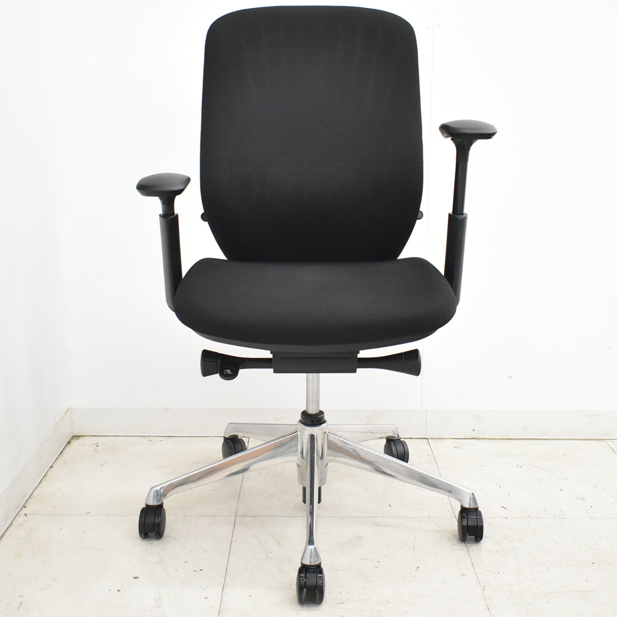 ■備考 オカムラ シルフィー ハイバック 可動肘 バックカーブアジャスト 前傾機能 ポリッシュ オカムラのシルフィーです。 身体と背もたれとのフィット感を向上させる今までにない新感覚オフィスチェアです。座る人の好みに合わせて、背もたれのカーブを2段階で変えられる「バックカーブアジャスト機構」を採用しました。オフィスで働くひとりひとりのカラダに合わせて、まるで手を添えて包み込まれるような優しい座り心地を実現しました。 ●機能 バックカーブアジャスト機構 背の両サイドにあるレバーを下の位置にすると緩やかなカーブになり、大柄な人にフィットします。レバーを上に持ち上げると狭いカーブになり、小柄な人にフィットします。 ●前傾機能付 背座シンクロリクライニング 座面左下のダイヤルでリクライニングの固定と解除が行えます。背と座はシンクロしてリクライニングし、従来の直立から後傾までのリクライニングに加え、パソコン作業や筆記作業時の前傾姿勢をサポートする「前傾ポジション」をとることが可能です。リクライニング範囲は、直立~後傾で23°、直立~前傾で10°です。リクライニングの固定は4段階です。 ●リクライニングの強弱調節 座面右下のダイヤルでリクライニングの強弱調節が行えます。これまでのダイヤル式よりも、少ない回転数で最弱~最強の調節が可能です。 ●座面の高さ調節 座面の右下にあるレバーを持ち上げることで、座面の高さ調節が可能です。(ストローク:100㎜) ●座面の奥行き調節 座面の左にあるレバー操作により、座面の奥行き調節が可能です。(ストローク:50mm) ●アジャストアームの調節(可動肘付タイプのみ) 肘パッド裏にあるボタンを押すことで、高さの調節が可能(ストローク:100㎜)。また、肘パッドは前後に50㎜、内側に20°、外側に20°動かすことができます。 ※背もたれ生地の表面がスレて白っぽくなっているところがあります。 ※脚のアルミ部分にスレ、キズあります。 建物内への搬入作業や梱包残材の回収をご希望される場合は、アートセッティングデリバリー(家財おまかせ便)でのお届けで対応可能です。 アートセッティングデリバリー(家財おまかせ便)でのお届けの場合の送料はお見積りとなります。 ご注文前にお見積りすることも可能ですし、ご注文時やご注文後にその旨ご希望いただければ対応させていただきますのでお申し付けください。 クリーニングとメンテナンスをしっかり行ってお届けします。 この商品の程度は中古品として美品といえます。 多少の擦れや傷はあるものの気になる程ではないでしょう。 御使用端末の環境により多少画像の表示色と実物の色に差違が生じる場合がございますのでご了承ください。 |