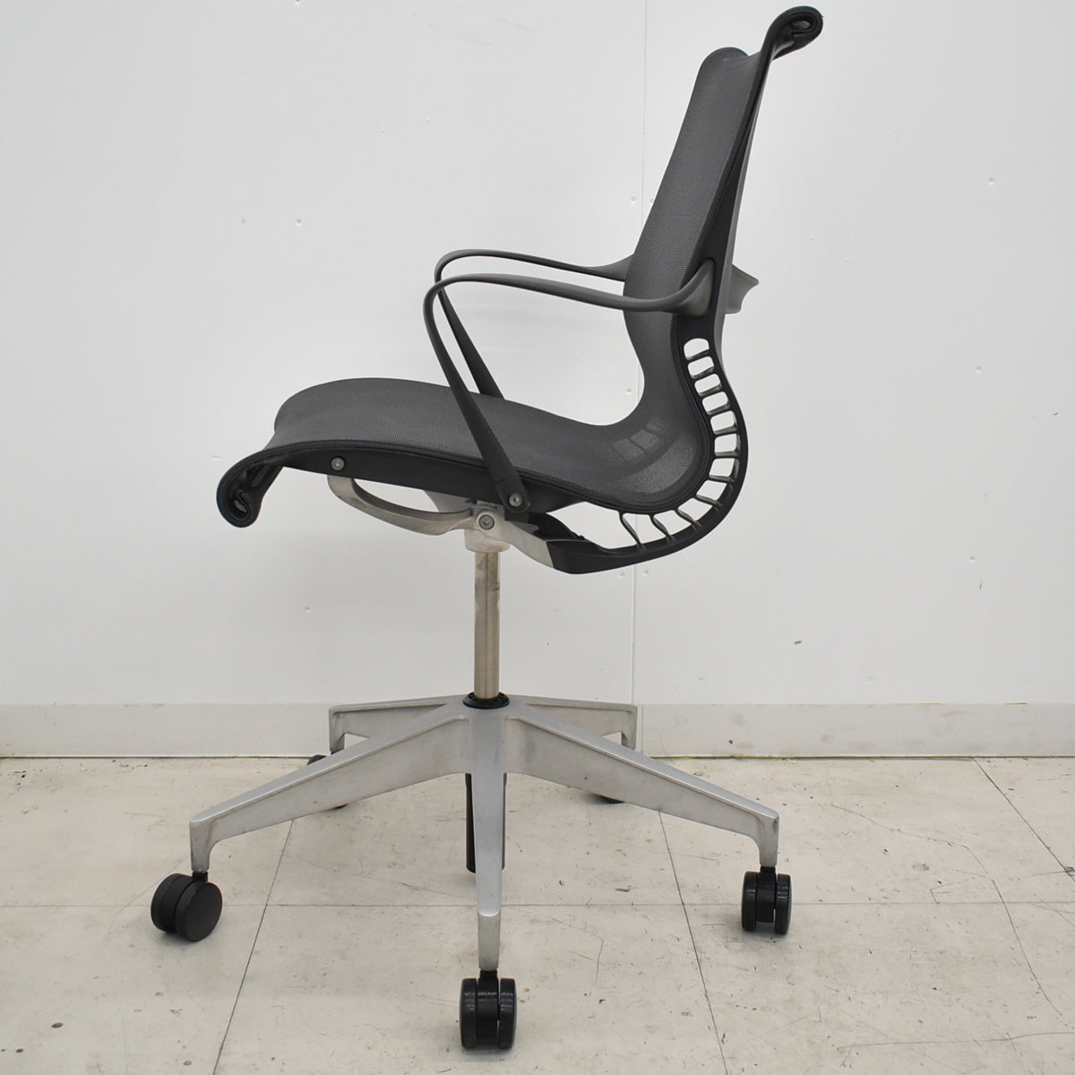 ■備考 ハーマン・ミラー セトゥチェア マルチパーパスチェア 固定肘 ハーマン・ミラーのセトゥチェアです。 複雑な要素をシンプルに解決したチェア。セトゥチェアは、あらゆる動きに従う革新的な「キネマチック・スパイン」を採用したオフィスチェアです。調整は必要ありません。サスペンション素材には、発売当初の「リリス」が進化した「リリス2」が採用されています。メッシュの織りが強化され、サポート力と独特の光沢が増しました。 セトゥチェアの機能とフィット感は、私たちの周りの環境にヒントを得て形作られました。スタジオ7.5のデザイナーたちは、テクノロジーが私たちの働き方、働く場所、1日を通しての私たちの動きをどのように変えたのかを観察しました。 私たちは、様々な場所で、今まで以上に協力し合って働いています。しかしひとつの場所でじっと過ごす時間は減りました。どこでも場所を問わずに働けることが当たり前になり、そしてそれに対応できるチェアが必要とされているのです。 テクノロジーの進化により、いかに働く場所や時間が変わったとしても、ひとつ変わらないことがあります。それは、快適さを求めていることです。セトゥチェアは、座った瞬間から快適さを体感することができるようにデザインされています。 ●キネマチックスパイン 素材の革新により、セトゥチェアは、柔軟性と強度という独特の組み合わせを持つチェアになりました。キネマチックスパインは、2種類のポリプロピレンを使用し、リクライニング時に抵抗力をコントロールし、体重をサポートします。あらゆる動きに柔軟にしなり、身体の動きに自然に対応します。 ●リリス2サスペンション シートと背もたれ テキスタイルというよりも構造要素である、細かく調整されたリリス2のエラストマー素材は、セトゥチェアの一体型の座面と背もたれを作っています。通気性のある、しなやかなサスペンションが坐骨に順応し、フィット感と快適さを提供して、かつ熱をこもらせません。 ※背もたれ上部メッシュにシワがあります。 ※背もたれメッシュに小さなダメージが数カ所あります。 ※脚部スレ、キズあります。 建物内への搬入作業や梱包残材の回収をご希望される場合は、アートセッティングデリバリー(家財おまかせ便)でのお届けで対応可能です。 アートセッティングデリバリー(家財おまかせ便)でのお届けの場合の送料はお見積りとなります。 ご注文前にお見積りすることも可能ですし、ご注文時やご注文後にその旨ご希望いただければ対応させていただきますのでお申し付けください。 クリーニングとメンテナンスをしっかり行ってお届けします。 この商品の程度は中古品として美品といえます。 多少の擦れや傷はあるものの気になる程ではないでしょう。 御使用端末の環境により多少画像の表示色と実物の色に差違が生じる場合がございますのでご了承ください。 |