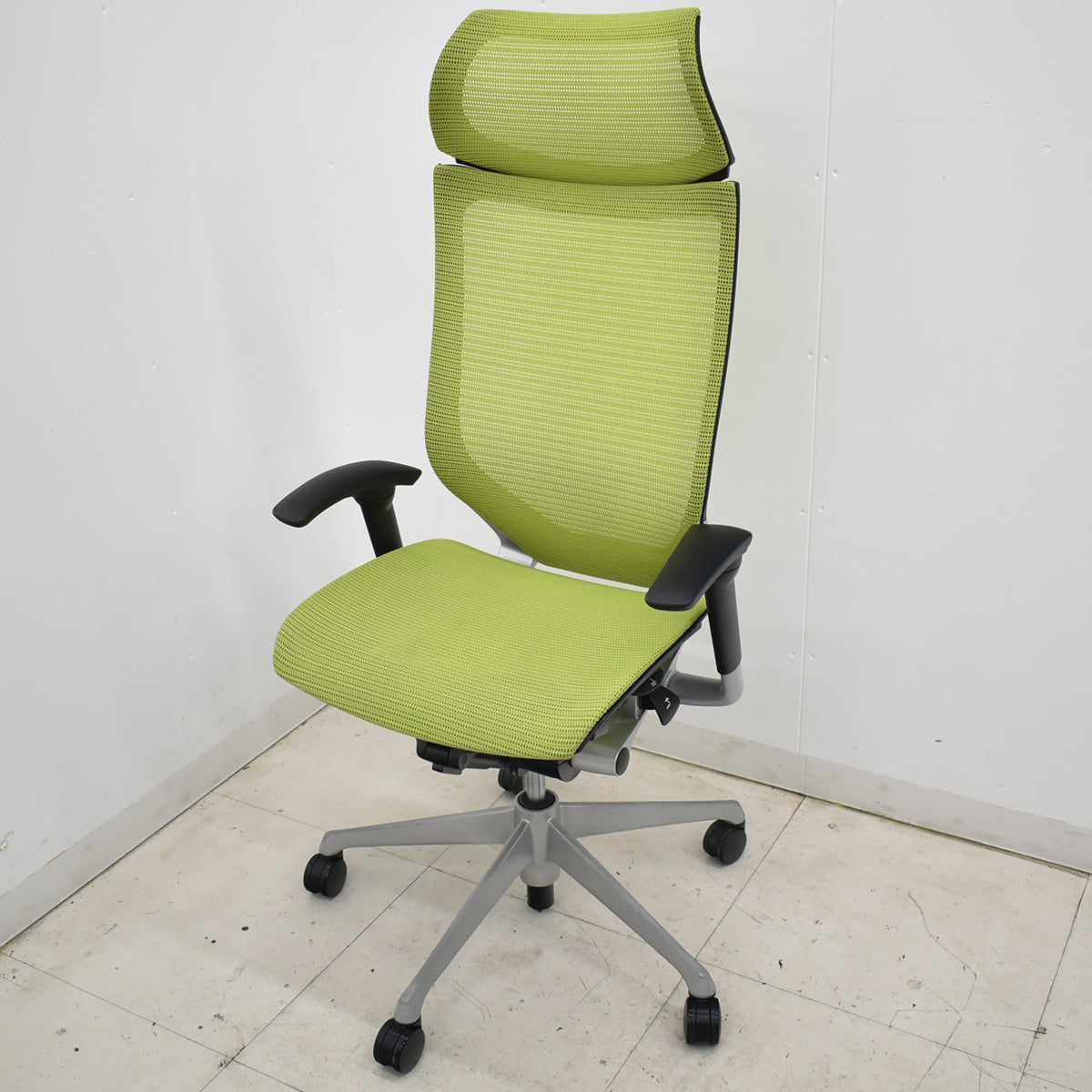 ■備考 オカムラ バロン エクストラハイバック ヘッドレスト 可動肘 ライムグリーン