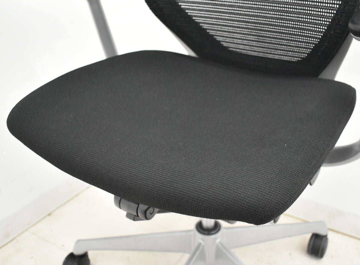 【中古】オカムラ バロン ローバック 固定肘 シルバー脚 ブラック 2025120205 【中古オフィス家具】