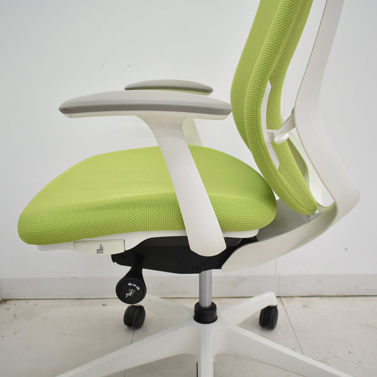 | ■備考 オカムラ シルフィー ハイバック 固定肘 バックカーブアジャスト 前傾機能 オカムラのシルフィーです。 身体と背もたれとのフィット感を向上させる今までにない新感覚オフィスチェアです。座る人の好みに合わせて、背もたれのカーブを2段階で変えられる「バックカーブアジャスト機構」を採用しました。オフィスで働くひとりひとりのカラダに合わせて、まるで手を添えて包み込まれるような優しい座り心地を実現しました。 ●機能 バックカーブアジャスト機構 背の両サイドにあるレバーを下の位置にすると緩やかなカーブになり、大柄な人にフィットします。レバーを上に持ち上げると狭いカーブになり、小柄な人にフィットします。 ●前傾機能付 背座シンクロリクライニング 座面左下のダイヤルでリクライニングの固定と解除が行えます。背と座はシンクロしてリクライニングし、従来の直立から後傾までのリクライニングに加え、パソコン作業や筆記作業時の前傾姿勢をサポートする「前傾ポジション」をとることが可能です。リクライニング範囲は、直立~後傾で23°、直立~前傾で10°です。リクライニングの固定は4段階です。 ●リクライニングの強弱調節 座面右下のダイヤルでリクライニングの強弱調節が行えます。これまでのダイヤル式よりも、少ない回転数で最弱~最強の調節が可能です。 ●座面の高さ調節 座面の右下にあるレバーを持ち上げることで、座面の高さ調節が可能です。(ストローク:100㎜) ●座面の奥行き調節 座面の左にあるレバー操作により、座面の奥行き調節が可能です。(ストローク:50mm) ●アジャストアームの調節(可動肘付タイプのみ) 肘パッド裏にあるボタンを押すことで、高さの調節が可能(ストローク:100㎜)。また、肘パッドは前後に50㎜、内側に20°、外側に20°動かすことができます。 ※肘パッドにインクシミ(文字)があります。 ※肘パッドが少々膨らんでいるように見えます。 ※背もたれ生地の表面に少々スレがあります。 建物内への搬入作業や梱包残材の回収をご希望される場合は、アートセッティングデリバリー(家財おまかせ便)でのお届けで対応可能です。 アートセッティングデリバリー(家財おまかせ便)でのお届けの場合の送料はお見積りとなります。 ご注文前にお見積りすることも可能ですし、ご注文時やご注文後にその旨ご希望いただければ対応させていただきますのでお申し付けください。 クリーニングとメンテナンスをしっかり行ってお届けします。 この商品の程度は中古品として美品といえます。 多少の擦れや傷はあるものの気になる程ではないでしょう。 御使用端末の環境により多少画像の表示色と実物の色に差違が生じる場合がございますのでご了承ください。 |