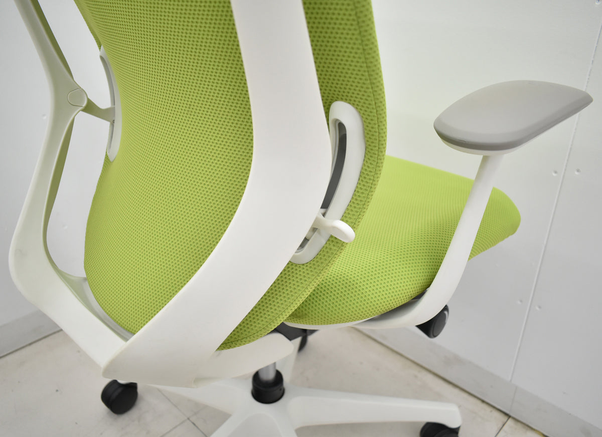【中古】オカムラ シルフィー ハイバック 固定肘 バックカーブアジャスト 前傾機能 グリーン 2025120602【中古オフィス家具】