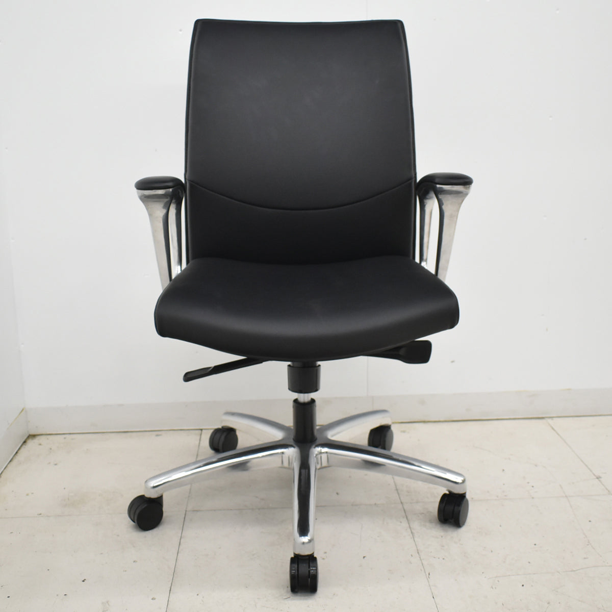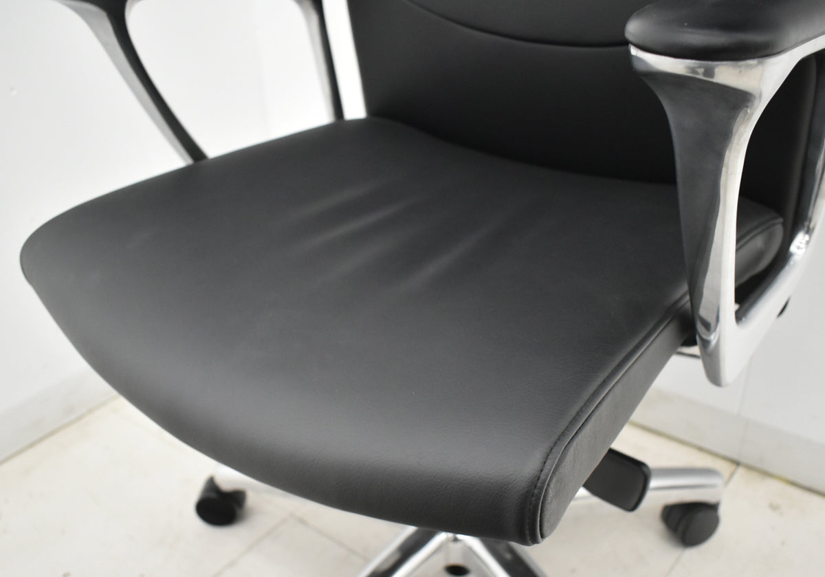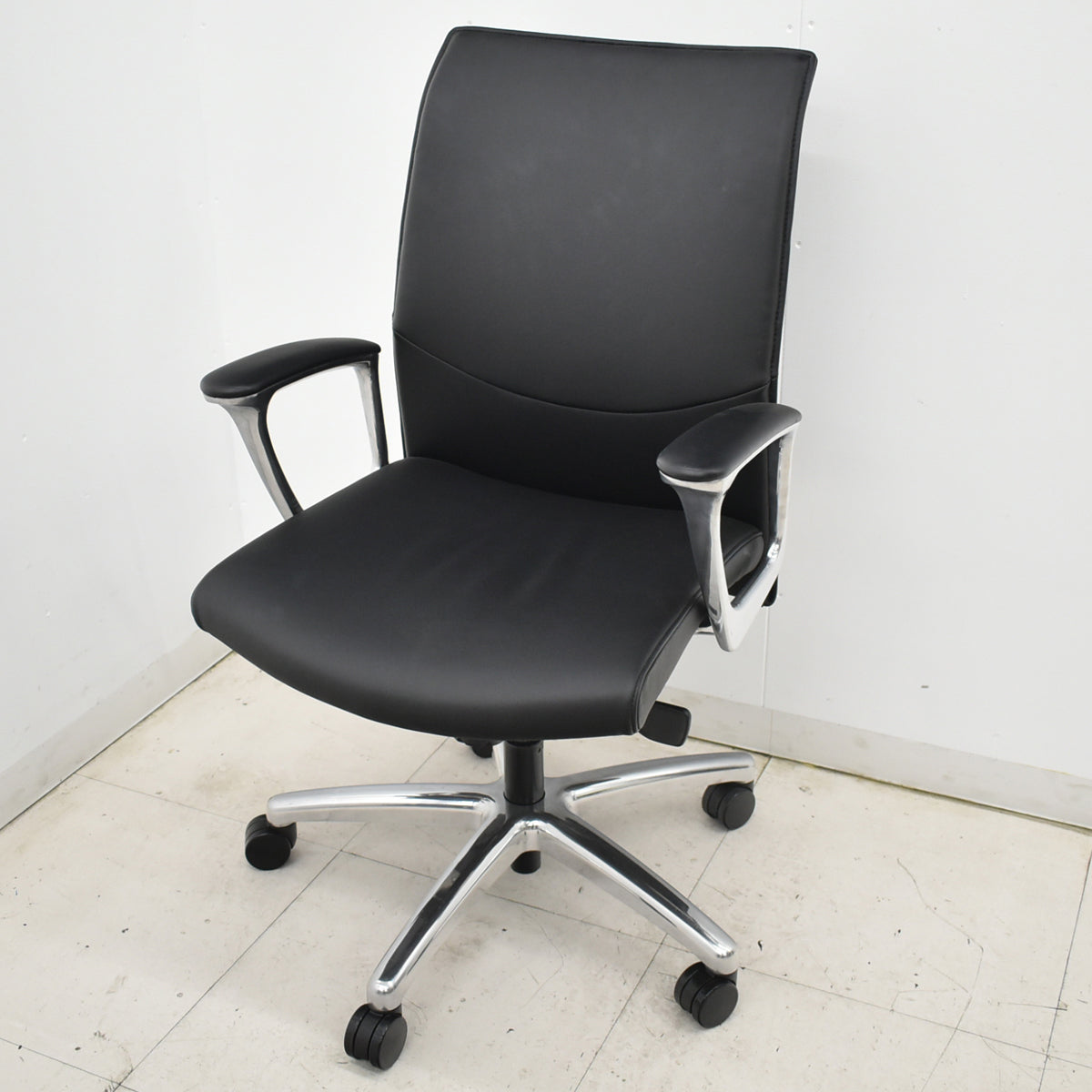 【中古】オカムラ CEシリーズ エグゼクティブチェア 固定肘 総革張り ブラック ポリッシュ 2024年製 2025120901【中古オフィス家具】