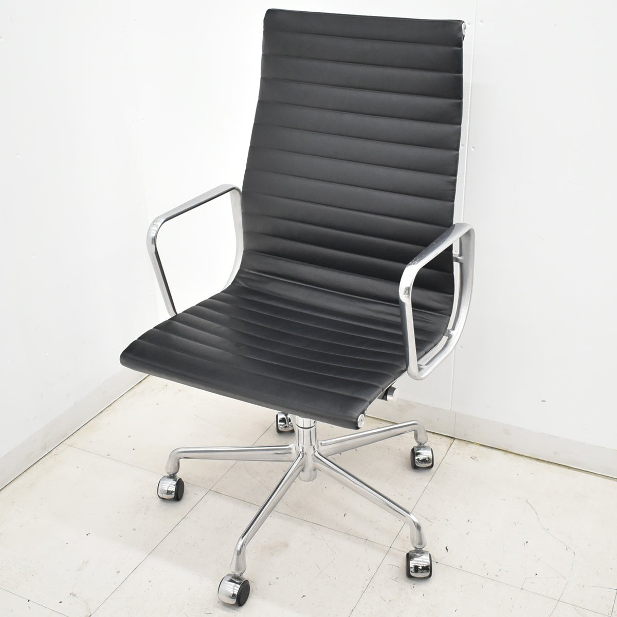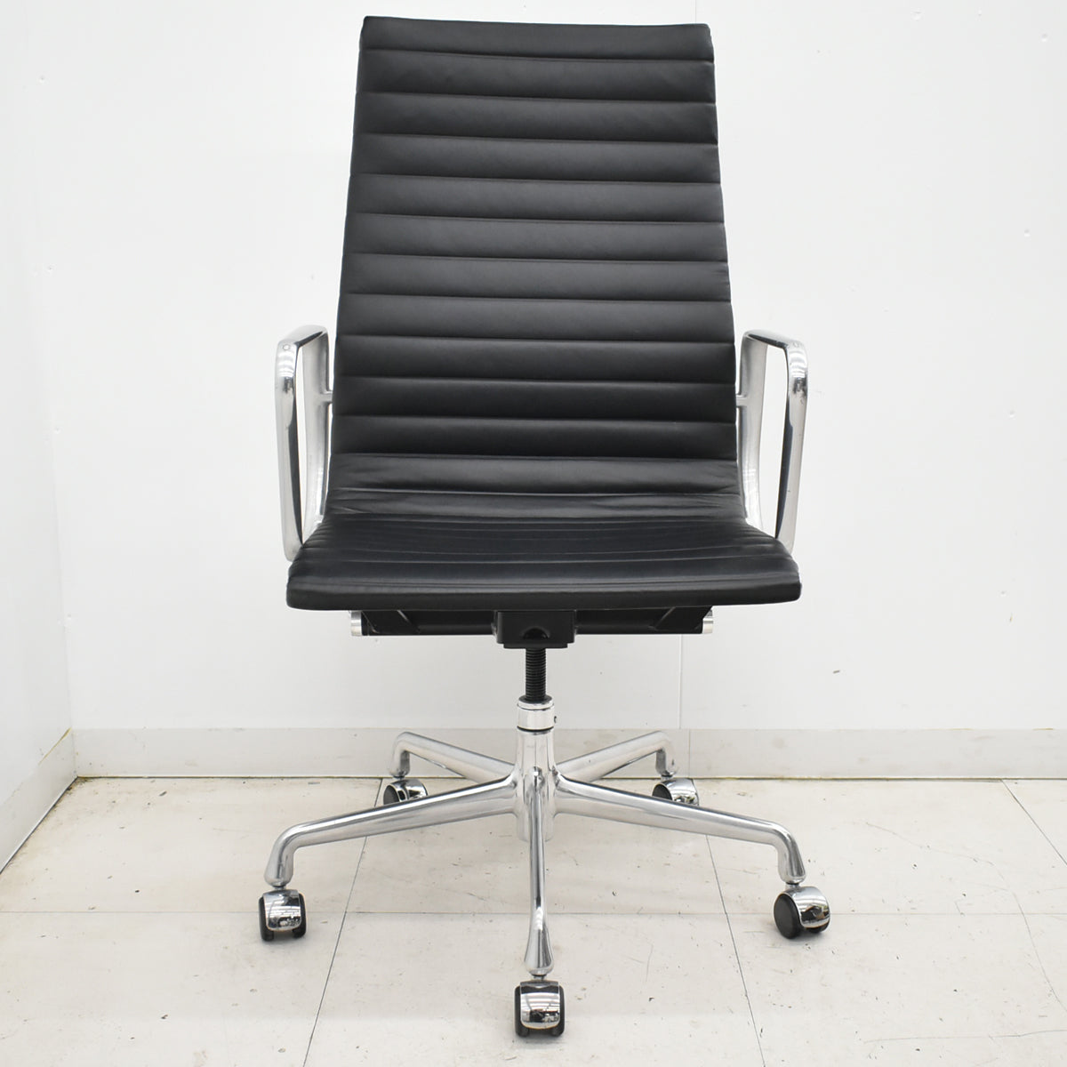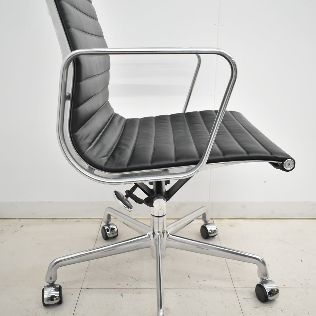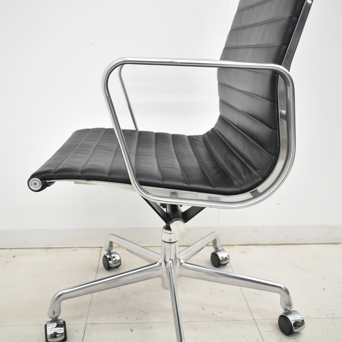 【中古】ハーマン・ミラー アルミナムグループチェア エグゼクティブ 総革張り 固定肘 ブラック 2025120902【中古オフィス家具】