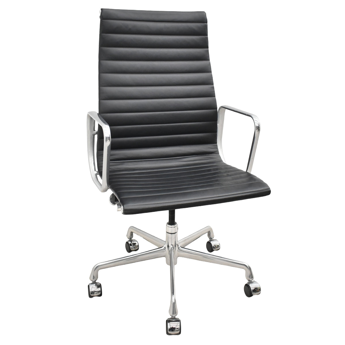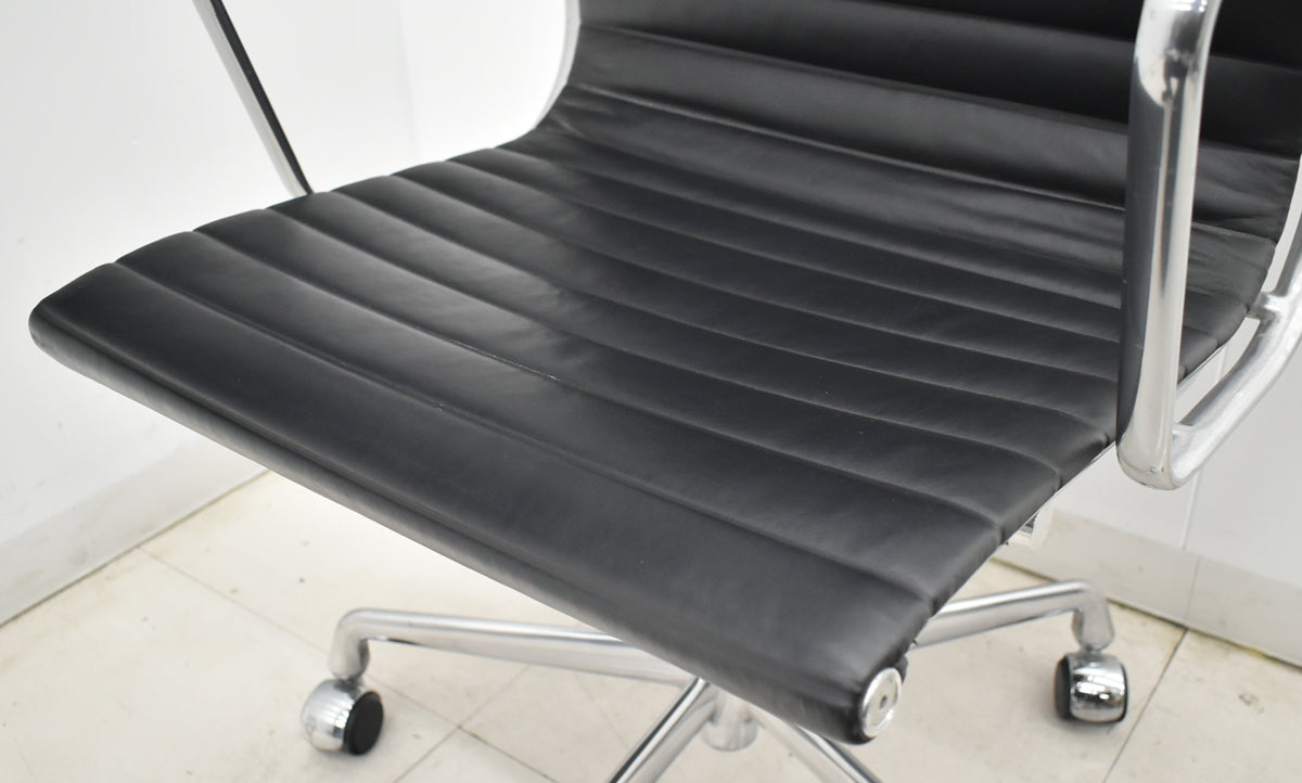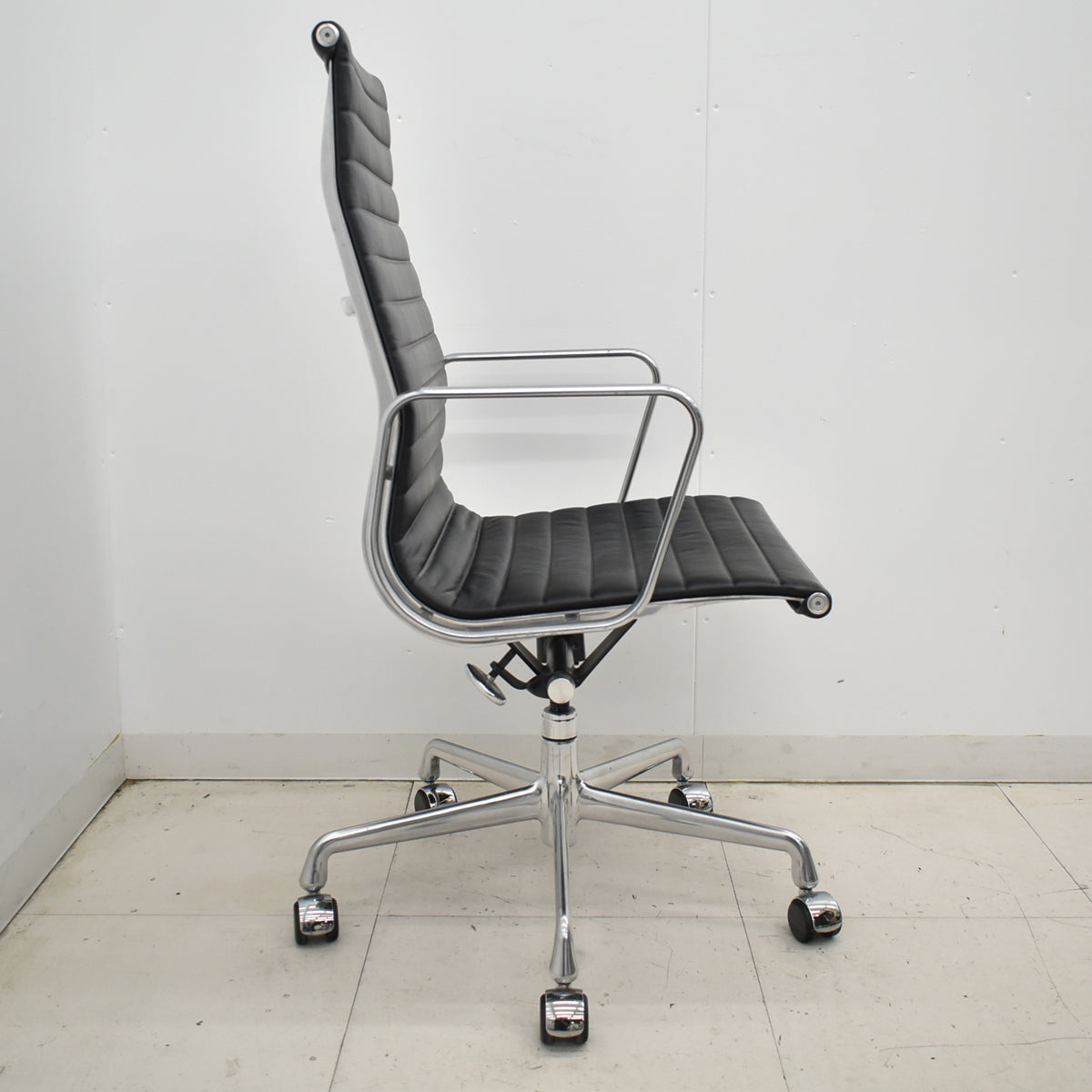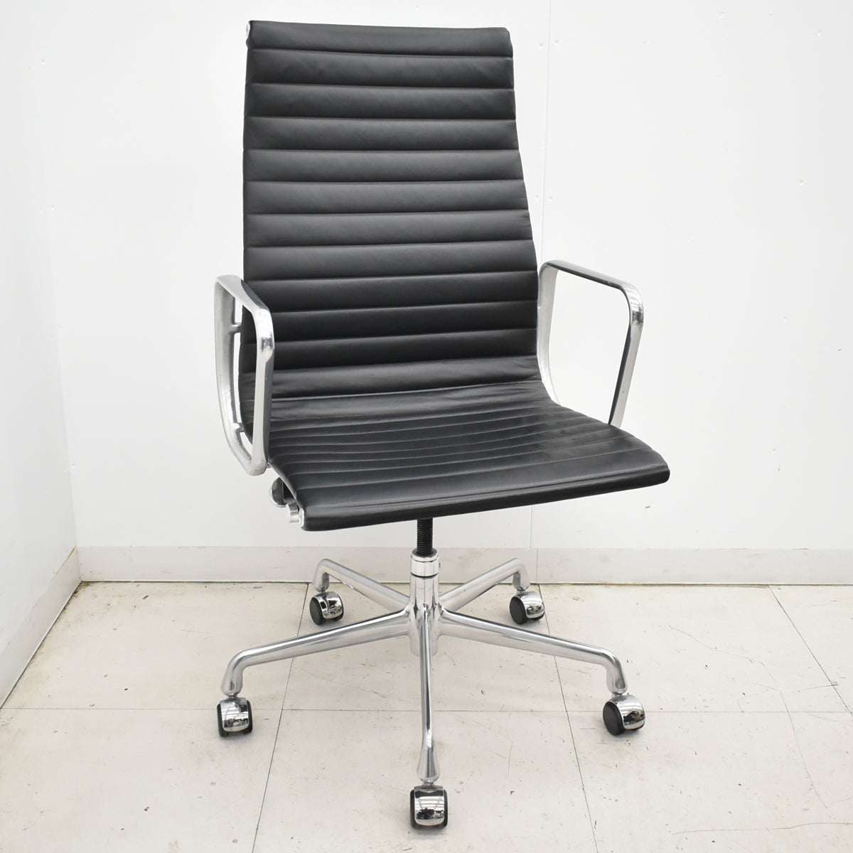 【中古】ハーマン・ミラー アルミナムグループチェア エグゼクティブ 総革張り 固定肘 ブラック 2025120902【中古オフィス家具】