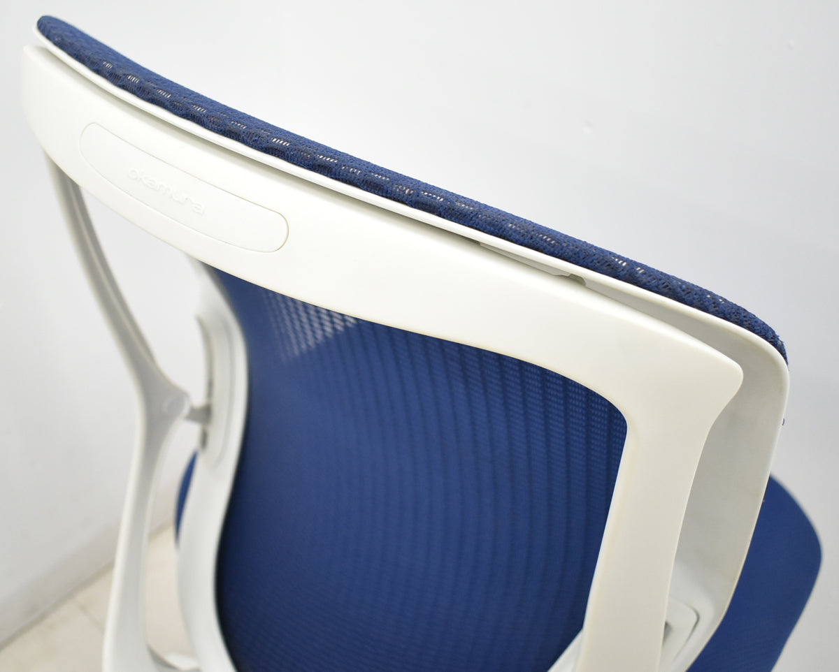 【中古】オカムラ シルフィー ローバック 前傾機能 バックカーブアジャスト 肘なし ミディアムブルー 2025120907【中古オフィス家具】