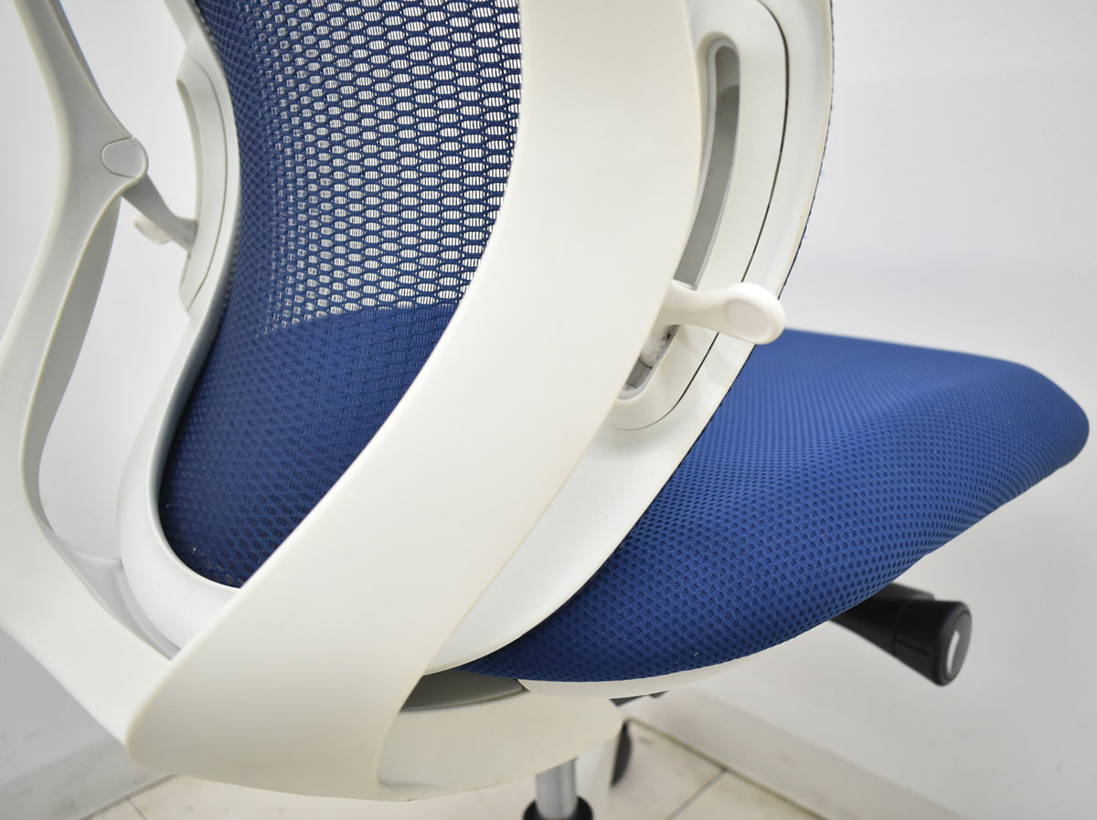 ■備考 オカムラ シルフィー ローバック 前傾機能 バックカーブアジャスト 肘なし ミディアムブルー オカムラのシルフィーです。 身体と背もたれとのフィット感を向上させる今までにない新感覚オフィスチェアです。 座る人の好みに合わせて、背もたれのカーブを2段階で変えられる「バックカーブアジャスト機構」を採用しました。オフィスで働くひとりひとりのカラダに合わせて、まるで手を添えて包み込まれるような優しい座り心地を実現しました。 ●機能 バックカーブアジャスト機構 背の両サイドにあるレバーを下の位置にすると緩やかなカーブになり、大柄な人にフィットします。レバーを上に持ち上げると狭いカーブになり、小柄な人にフィットします。 ●前傾機能付 背座シンクロリクライニング 座面左下のダイヤルでリクライニングの固定と解除が行えます。背と座はシンクロしてリクライニングし、従来の直立から後傾までのリクライニングに加え、パソコン作業や筆記作業時の前傾姿勢をサポートする「前傾ポジション」をとることが可能です。リクライニング範囲は、直立~後傾で23°、直立~前傾で10°です。リクライニングの固定は4段階です。 ●リクライニングの強弱調節 座面右下のダイヤルでリクライニングの強弱調節が行えます。これまでのダイヤル式よりも、少ない回転数で最弱~最強の調節が可能です。 ●座面の高さ調節 座面の右下にあるレバーを持ち上げることで、座面の高さ調節が可能です。(ストローク:100㎜) ●座面の奥行き調節 座面の左にあるレバー操作により、座面の奥行き調節が可能です。(ストローク:50mm) ※背もたれメッシュにスレやほつれなど少々ダメージがあります。 ※背面フレームが少々ヒヤケしているように見えます。 建物内への搬入作業や梱包残材の回収をご希望される場合は、アートセッティングデリバリー(家財おまかせ便)でのお届けで対応可能です。 アートセッティングデリバリー(家財おまかせ便)でのお届けの場合の送料はお見積りとなります。 ご注文前にお見積りすることも可能ですし、ご注文時やご注文後にその旨ご希望いただければ対応させていただきますのでお申し付けください。 クリーニングとメンテナンスをしっかり行ってお届けします。 この商品の程度は中古品として美品といえます。 多少の擦れや傷はあるものの気になる程ではないでしょう。 御使用端末の環境により多少画像の表示色と実物の色に差違が生じる場合がございますのでご了承ください。 |