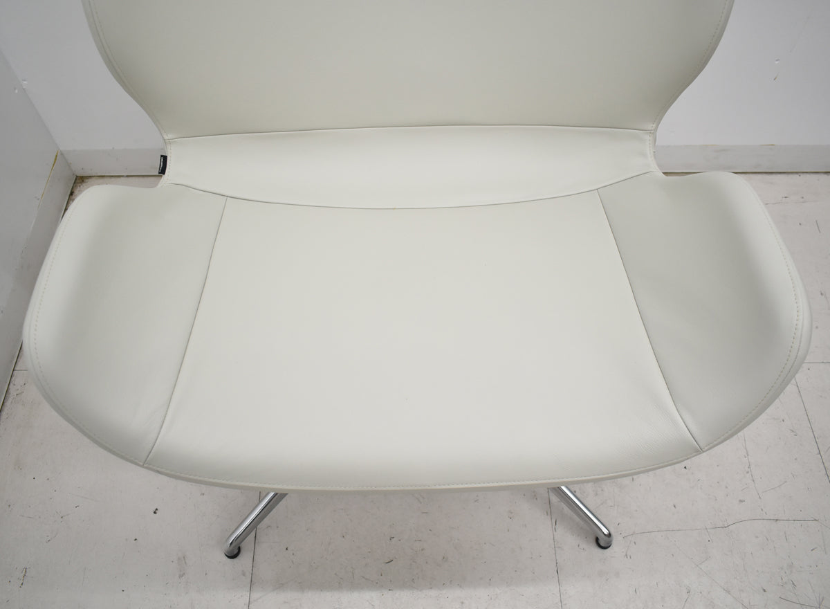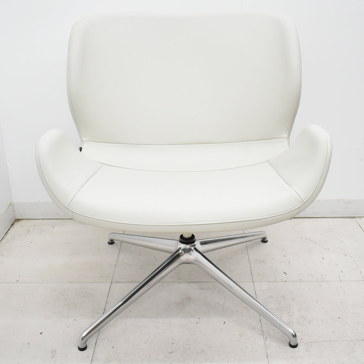 【中古】[新品未使用品・箱不良]オカムラ フロックス ラウンジチェア アルミ4スターレッグ(グライド)幅720 革張り ホワイト 2025121701【中古オフィス家具】
