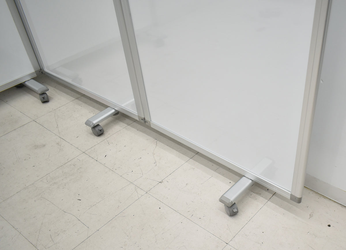 【中古】メーカー不明 3連パーテーション ホワイトボードスクリーン キャスター付 ホワイト 幅2700 2025121702【中古オフィス家具】