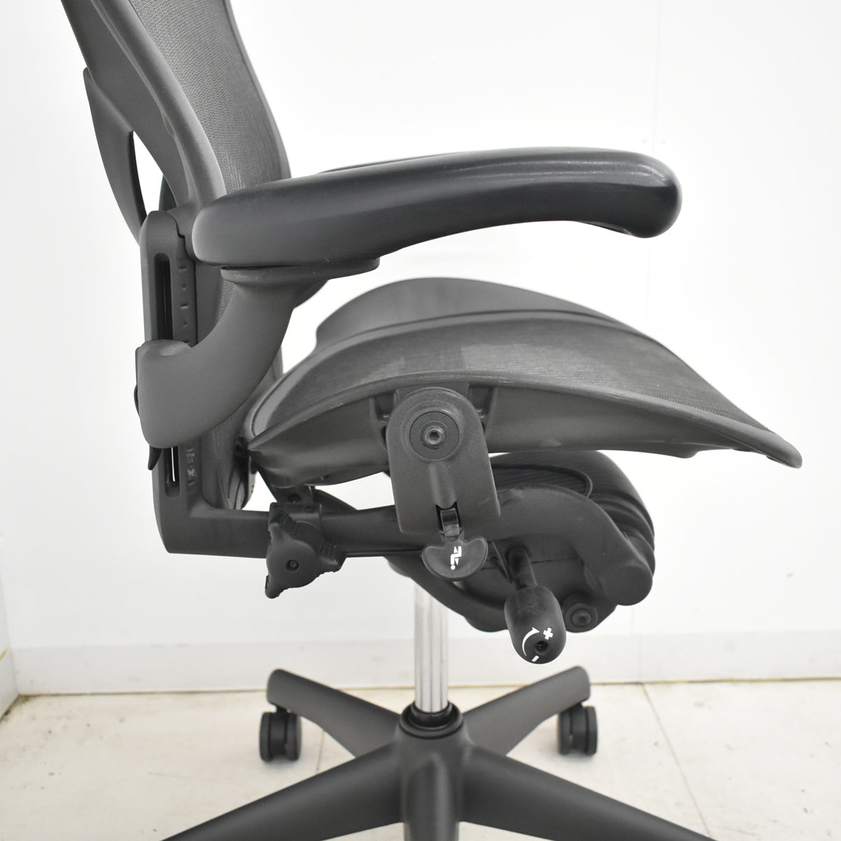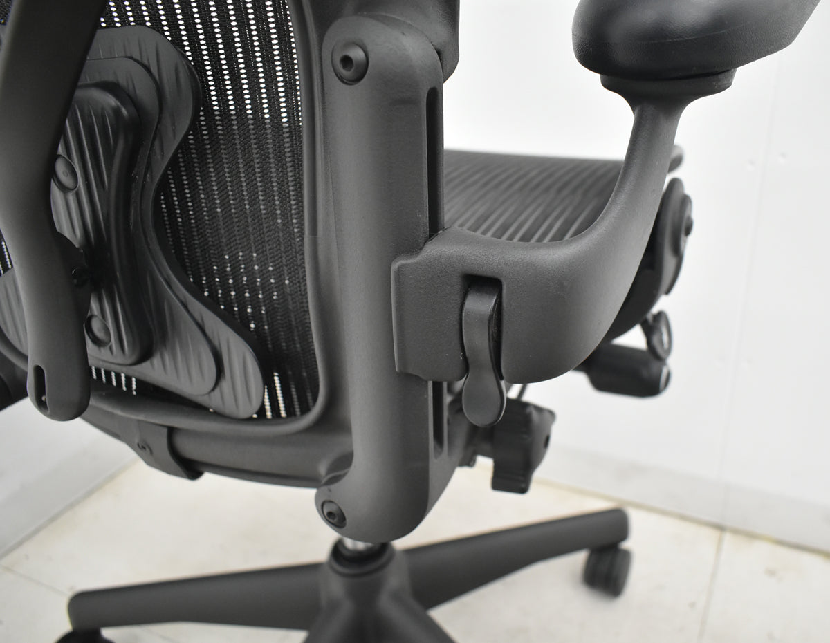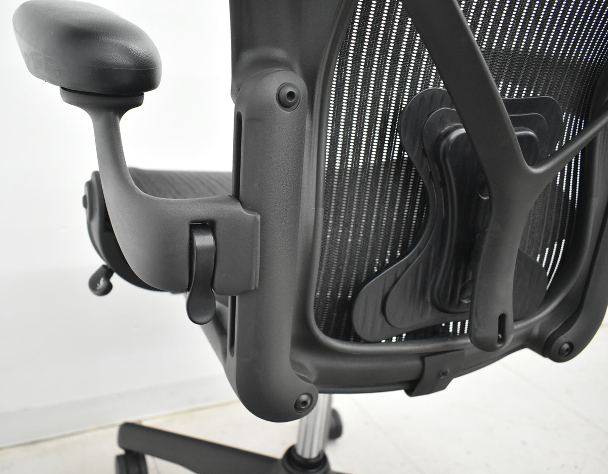【中古】ハーマンミラー アーロンチェア Bサイズ 可動肘(レバータイプ)ポスチャーフィット リクライニング範囲調整機能付(前傾機能はありません)昇降ガス新品交換済 ブラック 2025122003【中古オフィス家具】