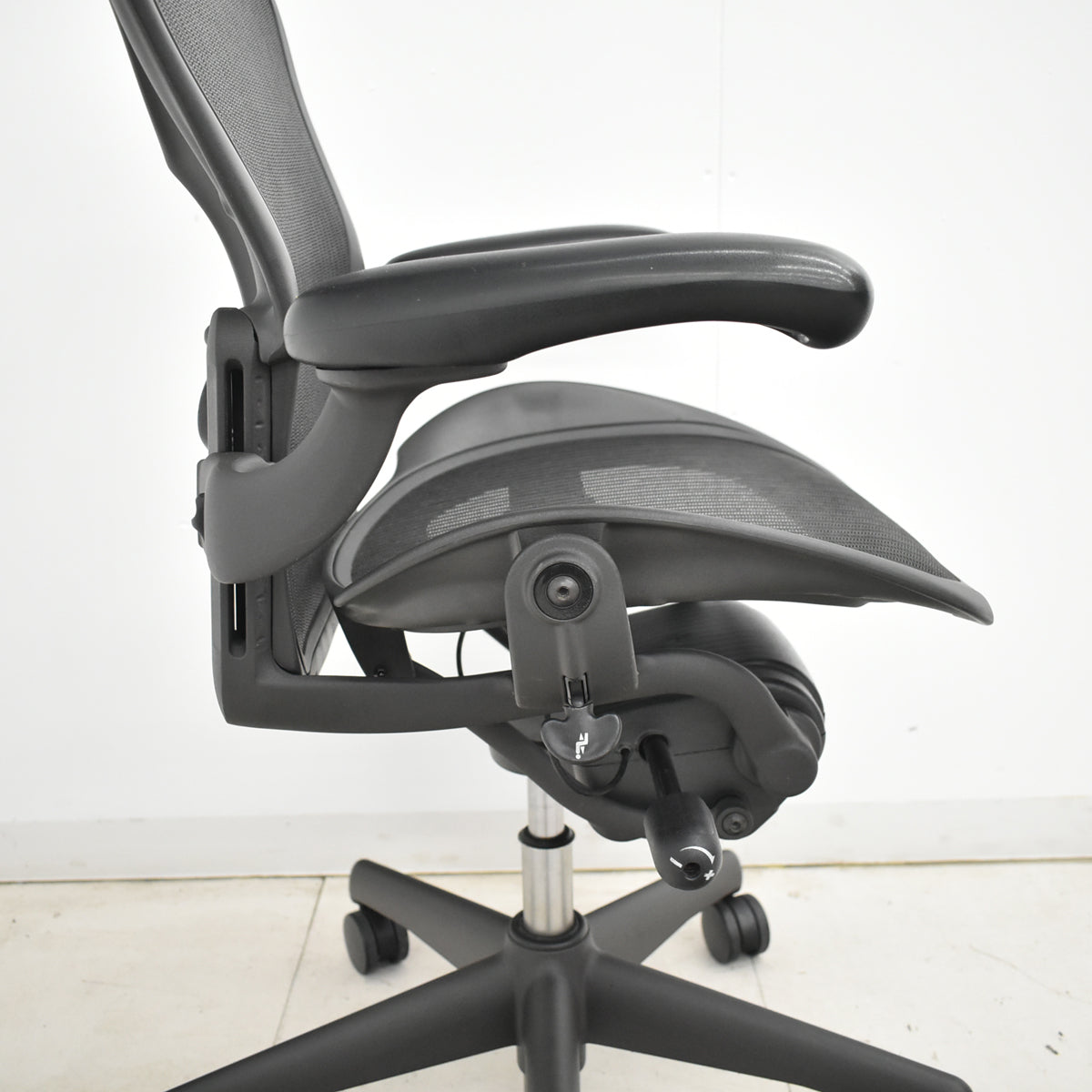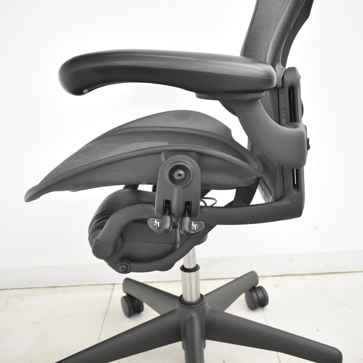 ■備考 ハーマンミラー アーロンチェア Aサイズ フル装備 ランバーサポート ブラック ハーマン・ミラーのアーロンチェアです。 ●快適さとサポートの融合 アーロンチェアは1994年の発表以来、エルゴノミックシーティングの基準となっています。それ以来、ハーマンミラーは人々と人々の姿勢を最適にサポートする方法について多くのことを学んできました。 ●自然要素からのデザイン アーロンチェアは、自然から得られるエレメントを中心に、厳選された4つの素材の表情豊かなカラーバリエーションを展開しています。オニキスは、アーロンの現代性を追求したドラマチックなウルトラブラックが特徴です。グラファイトは、特徴的なダークグレーで、クラシックな質感の仕上がりです。カーボンは、バランスの取れたニュートラルなカラーで、クールな雰囲気から暖かい雰囲気の空間まで、どこでも良くなじみます。ミネラルは最も軽く、アーロンを細部まで明るくするので、開放的なフロアプランやスペースに理想的です。チェアの各コンポーネントは慎重に設計されており、基本的に調和のとれた配色になっています。 ●よりインクルーシブなチェア アーロンの3つのサイズ、A、B、Cは、幅広い体型に対応できるように正確に設計されています。人間工学に基づいたチェアの多くは、5パーセンタイルから95パーセンタイルの人に適していますが、背もたれの高さから座面の幅、チルトメカニズム、ベースのサイズに至るまで、さらに幅広い範囲の人に合ったチェアが適していると、私たちは考えています。アーロンは、1パーセンタイルから99パーセンタイルまで、ほぼすべての人に適しています。 デザイナー: Bill Stumpf & Don Chadwick (ビル・スタンフ、ドン・チャドウィック) 両者のリサーチから生まれたハーマンミラー社の椅子。それが、アーロンチェアです。人間のあらゆる動作にフィットする椅子で、まるで着慣れた服のような快適さを提供してくれます。背に使われている「ペリクル」は、着座時に、体重をシートと背もたれに均等に分散させます。また、メッシュになっているため、通気性がよく、長時間座っていても快適にオフィスワークをすることができます。 エルゴノミクス(人間工学)を追求したアーロンチェアのこだわり。 ペリクルサスぺンション機構 シートの背もたれには、アーロンチェアならではのメッシュ地の画期的新素材を使用。通気性が良く、さらに体重が均等に分散されるため長時間座っていても疲れません。 キネマット・チルト機構 キネマットチルト機構は革新的なチルト機構です。これまでのチェアのチルト機能は筋肉を使いリクライニングしていました。アーロンチェアのチルトメカニズムは、足首、膝、腰 肩、首を軸としたチルトを可能としました。これにより、自然な身体の動きを妨げず、重心の前後の移動のみでリクライニングが可能となりました。30度のリクライニングの範囲内で常に身体のバランスを保ち、適切にコントロールします。作業中のあらゆる姿勢を健康的かつ快適なものとします。 フル装備ですので全ての機能が利用可能です。 ○シート高さ(ガス圧式) ○リクライニングの硬さ調節 ○前傾チルト設定 ○リクライニングの範囲設定 ○アーム高さ調節 ○アーム角度アーム角度調節 ランバーサポート ※バナナクッションを新品(シーフロントインサートフォーム・メーカー社外品)に交換してあります。 ※ハーマンミラー製のアーロンチェア(クラシックタイプ)用の上下昇降用ガススプリングを新品(新品・社外品・純正品と同一メーカー製)に交換することが可能です。 以下のリンクの商品をアーロンチェアと同時にご購入ください。 上下昇降用ガススプリングはこちら 建物内への搬入作業や梱包残材の回収をご希望される場合は、アートセッティングデリバリー(家財おまかせ便)でのお届けで対応可能です。 アートセッティングデリバリー(家財おまかせ便)でのお届けの場合の送料はお見積りとなります。 ご注文前にお見積りすることも可能ですし、ご注文時やご注文後にその旨ご希望いただければ対応させていただきますのでお申し付けください。 クリーニングとメンテナンスをしっかり行ってお届けします。 この商品の程度は中古品として美品といえます。 多少の擦れや傷はあるものの気になる程ではないでしょう。 御使用端末の環境により多少画像の表示色と実物の色に差違が生じる場合がございますのでご了承ください。 |