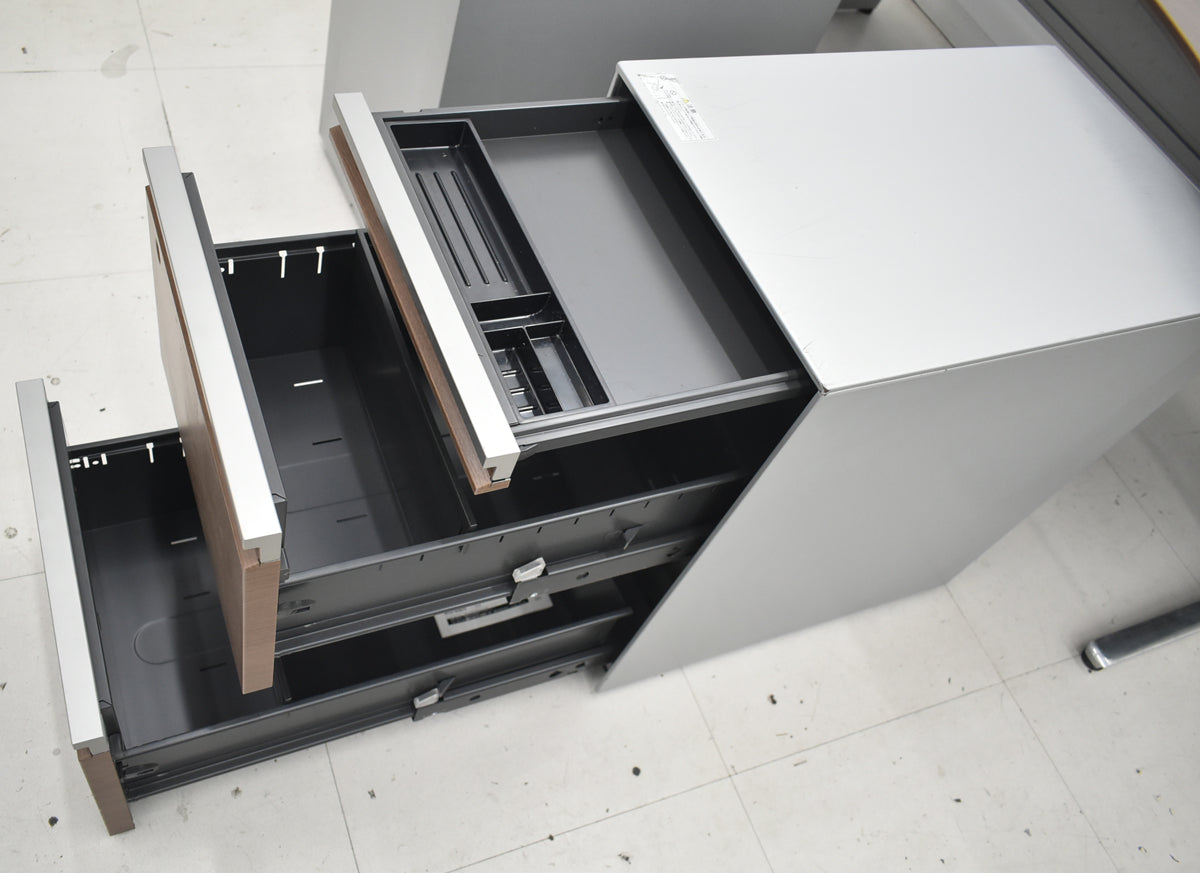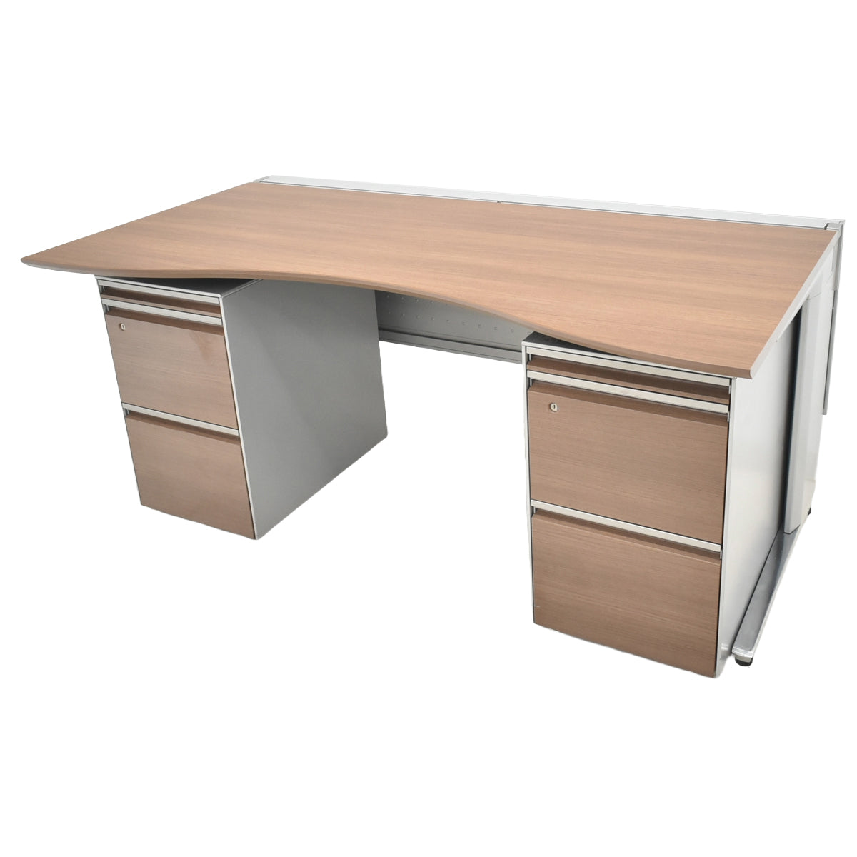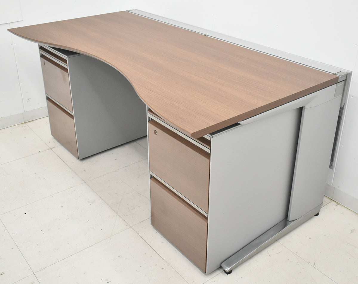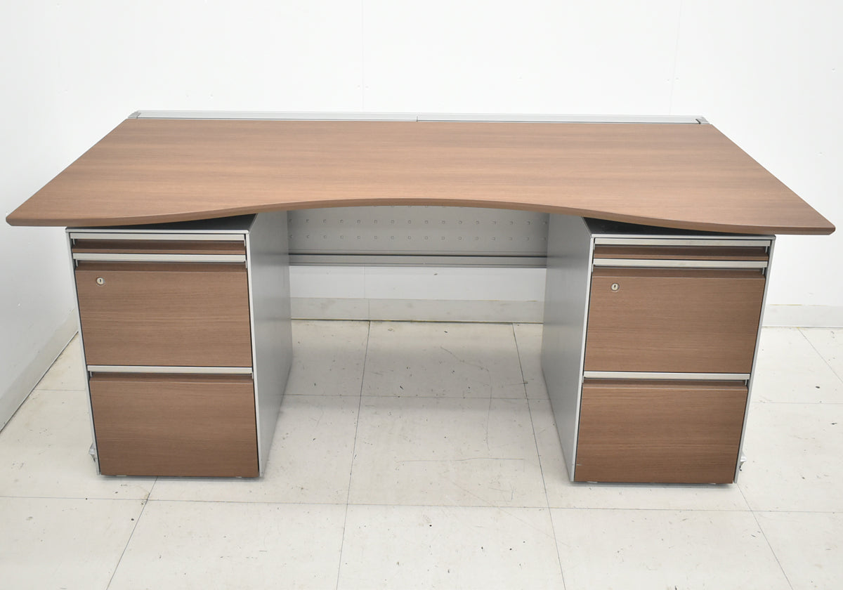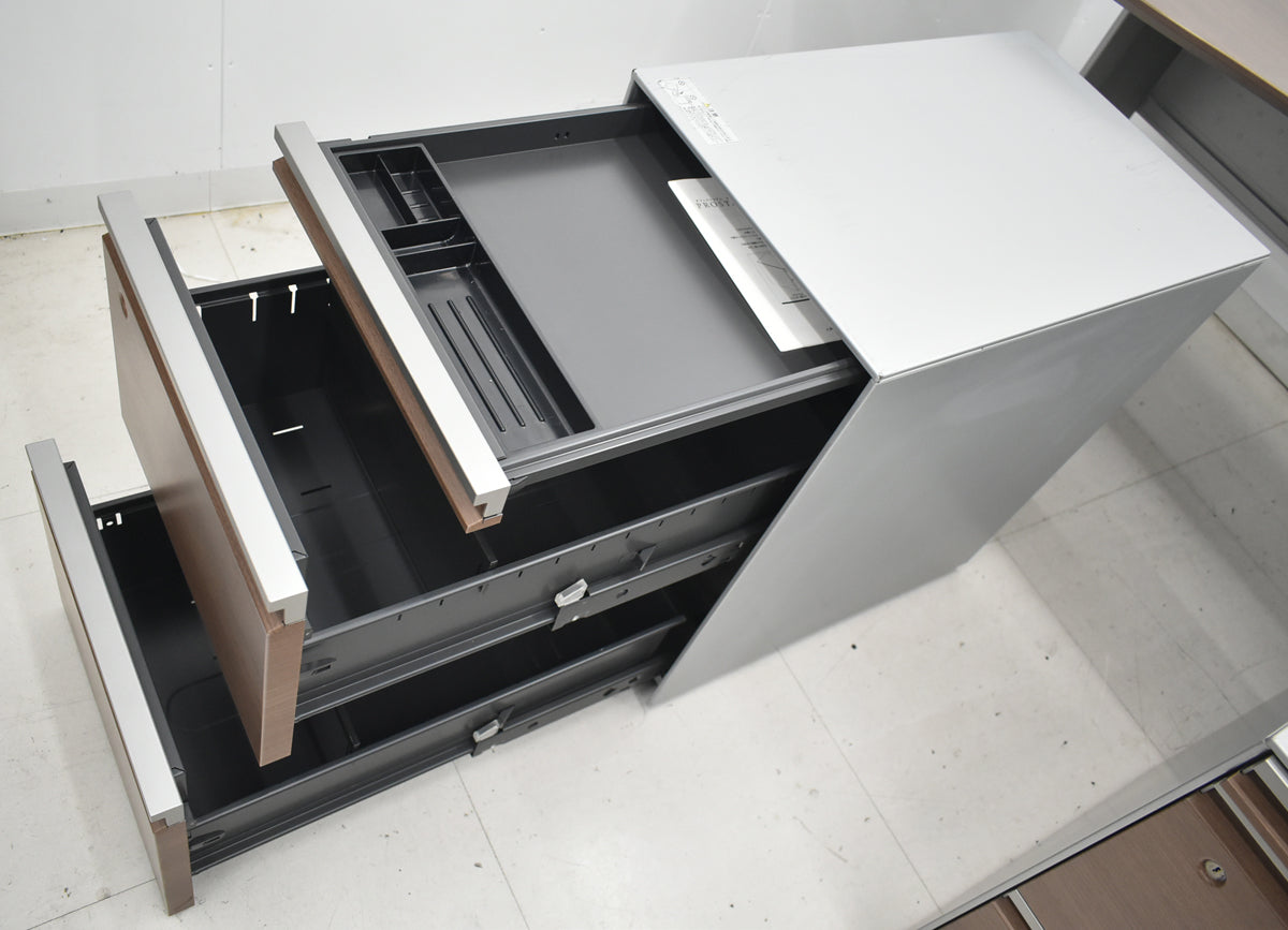 【中古】オカムラ プロステージクレストワゴン(2台)+ラウンドデスク幕板付 3点セット 幅1600 ネオウッドライト 2025122405【中古オフィス家具】