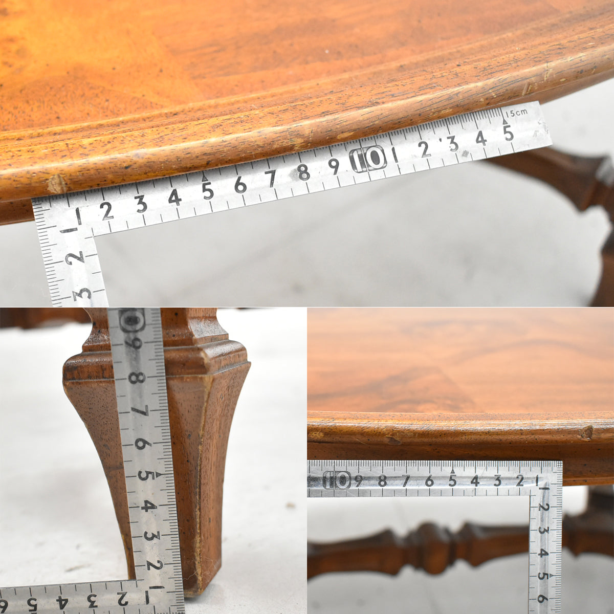 ■備考 ドレクセルヘリテイジ キャメオクラシックス センターテーブル カクテルテーブル 幅1345 木製 ドレクセルヘリテイジのキャメオクラシックスシリーズ・センターテーブルです。 ドレクセルヘリテイジ(DREXEL HERITAGE)の「Cameo Classics(カメオクラシックス)」シリーズは、アメリカの高級家具の伝統と、イタリアン・クラシックの優雅なデザインを融合させた、同ブランドを代表する最高級シリーズの一つです。 このシリーズは、中世イタリアの意匠を現代の住空間に蘇らせたような、華やかで格調高い雰囲気が特徴です。主なポイントを解説します。 「キャメオクラシックス」という名の通り、宝石彫刻の「カメオ」を思わせるような、繊細で立体的な彫刻が随所に施されています。 18世紀イタリアの伝統的な様式をベースにしており、曲線美を活かした猫脚(カブリオールレッグ)や、華やかな装飾が、お部屋に気品をもたらします。 ドレクセルヘリテイジ: 1903年にアメリカ・ノースカロライナ州で「ドレクセル・ファニチャー・カンパニー」として設立。後に高級ブランドの「ヘリテイジ」を吸収し、ドレクセルヘリテイジとなりました。 ヨーロッパの伝統的な意匠(フランス、イギリス、イタリア等)をアメリカのライフスタイルに落とし込み、独自の気品あるスタイルを確立しました。 ※天板エッジ部分の一か所に大きなカケがあります(補修してあります)。 ※天板エッジ部分にスレ、キズなど複数あります。 ※アートセッティングデリバリー(家財おまかせ便)でのお届けとなります。 ※送料はお見積りとなります。 運送会社が搬入・開梱作業まで行います。 地域により配達できる曜日が異なります。 地域により配達時間帯指定ができる場合がございます(3区分・4区分)。 地域により配達時間帯指定が有料になる場合がございます(3区分・4区分)。 詳しくは弊社までお尋ねください。 ●送料例 北海道(道南):21,206円(税込) 宮城県:12,501円(税込) 東京都:11,721円(税込) 新潟県:12,407円(税込) 石川県:12,896円(税込) 愛知県:12,324円(税込) 大阪府:13,811円(税込) 広島県:17,638円(税込) 高知県:17,867円(税込) 福岡県:19,438円(税込) 鹿児島県:22,693円(税込) 沖縄県:33,998円(税込) クリーニングとメンテナンスをしっかり行ってお届けします。 この商品の程度は中古品として美品といえます。 多少の擦れや傷はあるものの気になる程ではないでしょう。 御使用端末の環境により多少画像の表示色と実物の色に差違が生じる場合がございますのでご了承ください。 |