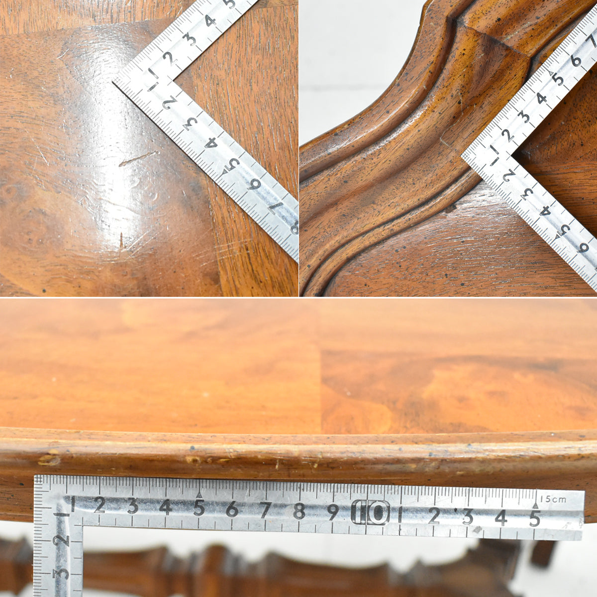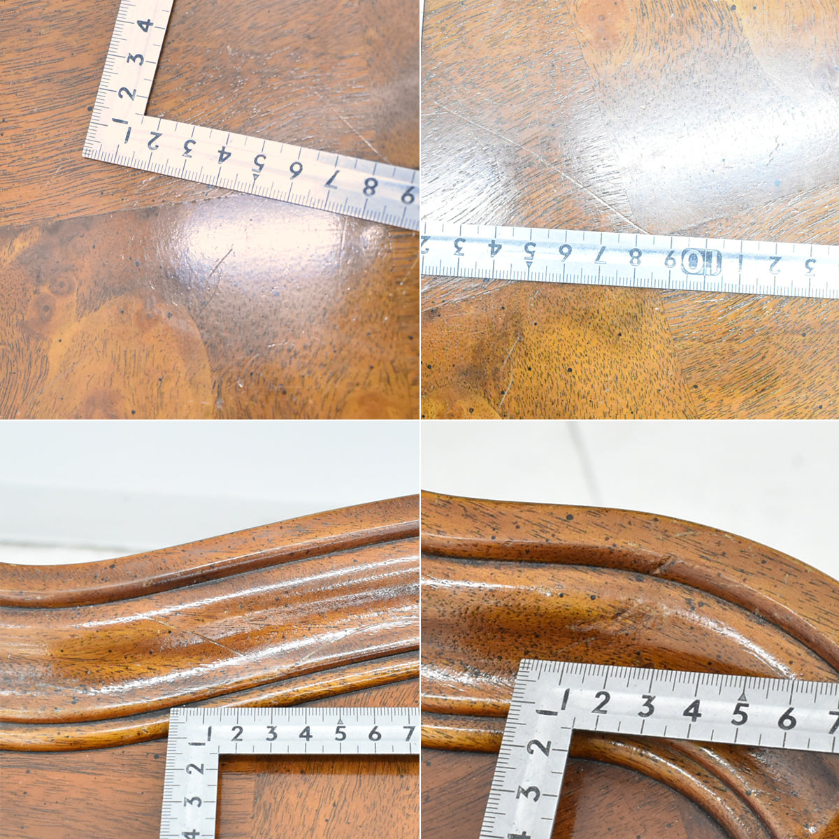 ■備考 ドレクセルヘリテイジ キャメオクラシックス センターテーブル カクテルテーブル 幅1345 木製 ドレクセルヘリテイジのキャメオクラシックスシリーズ・センターテーブルです。 ドレクセルヘリテイジ(DREXEL HERITAGE)の「Cameo Classics(カメオクラシックス)」シリーズは、アメリカの高級家具の伝統と、イタリアン・クラシックの優雅なデザインを融合させた、同ブランドを代表する最高級シリーズの一つです。 このシリーズは、中世イタリアの意匠を現代の住空間に蘇らせたような、華やかで格調高い雰囲気が特徴です。主なポイントを解説します。 「キャメオクラシックス」という名の通り、宝石彫刻の「カメオ」を思わせるような、繊細で立体的な彫刻が随所に施されています。 18世紀イタリアの伝統的な様式をベースにしており、曲線美を活かした猫脚(カブリオールレッグ)や、華やかな装飾が、お部屋に気品をもたらします。 ドレクセルヘリテイジ: 1903年にアメリカ・ノースカロライナ州で「ドレクセル・ファニチャー・カンパニー」として設立。後に高級ブランドの「ヘリテイジ」を吸収し、ドレクセルヘリテイジとなりました。 ヨーロッパの伝統的な意匠(フランス、イギリス、イタリア等)をアメリカのライフスタイルに落とし込み、独自の気品あるスタイルを確立しました。 ※天板エッジ部分にスレ、キズなど複数あります。 ※アートセッティングデリバリー(家財おまかせ便)でのお届けとなります。 ※送料はお見積りとなります。 運送会社が搬入・開梱作業まで行います。 地域により配達できる曜日が異なります。 地域により配達時間帯指定ができる場合がございます(3区分・4区分)。 地域により配達時間帯指定が有料になる場合がございます(3区分・4区分)。 詳しくは弊社までお尋ねください。 ●送料例 北海道(道南):21,206円(税込) 宮城県:12,501円(税込) 東京都:11,721円(税込) 新潟県:12,407円(税込) 石川県:12,896円(税込) 愛知県:12,324円(税込) 大阪府:13,811円(税込) 広島県:17,638円(税込) 高知県:17,867円(税込) 福岡県:19,438円(税込) 鹿児島県:22,693円(税込) 沖縄県:33,998円(税込) クリーニングとメンテナンスをしっかり行ってお届けします。 この商品の程度は中古品として美品といえます。 多少の擦れや傷はあるものの気になる程ではないでしょう。 御使用端末の環境により多少画像の表示色と実物の色に差違が生じる場合がございますのでご了承ください。 |