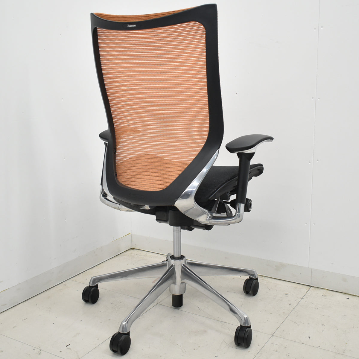 ■備考 オカムラ バロン ハイバック 可動肘 ポリッシュ ブラック×オレンジ 肘パッド新品