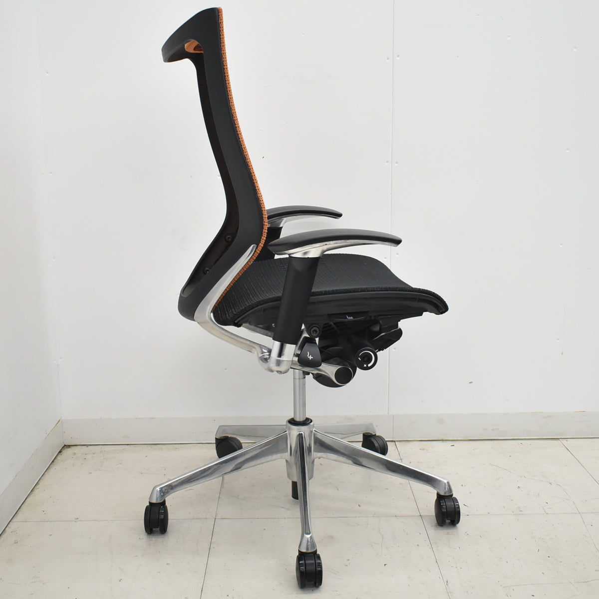 ■備考 オカムラ バロン ハイバック 可動肘 ポリッシュ ブラック×オレンジ 肘パッド新品