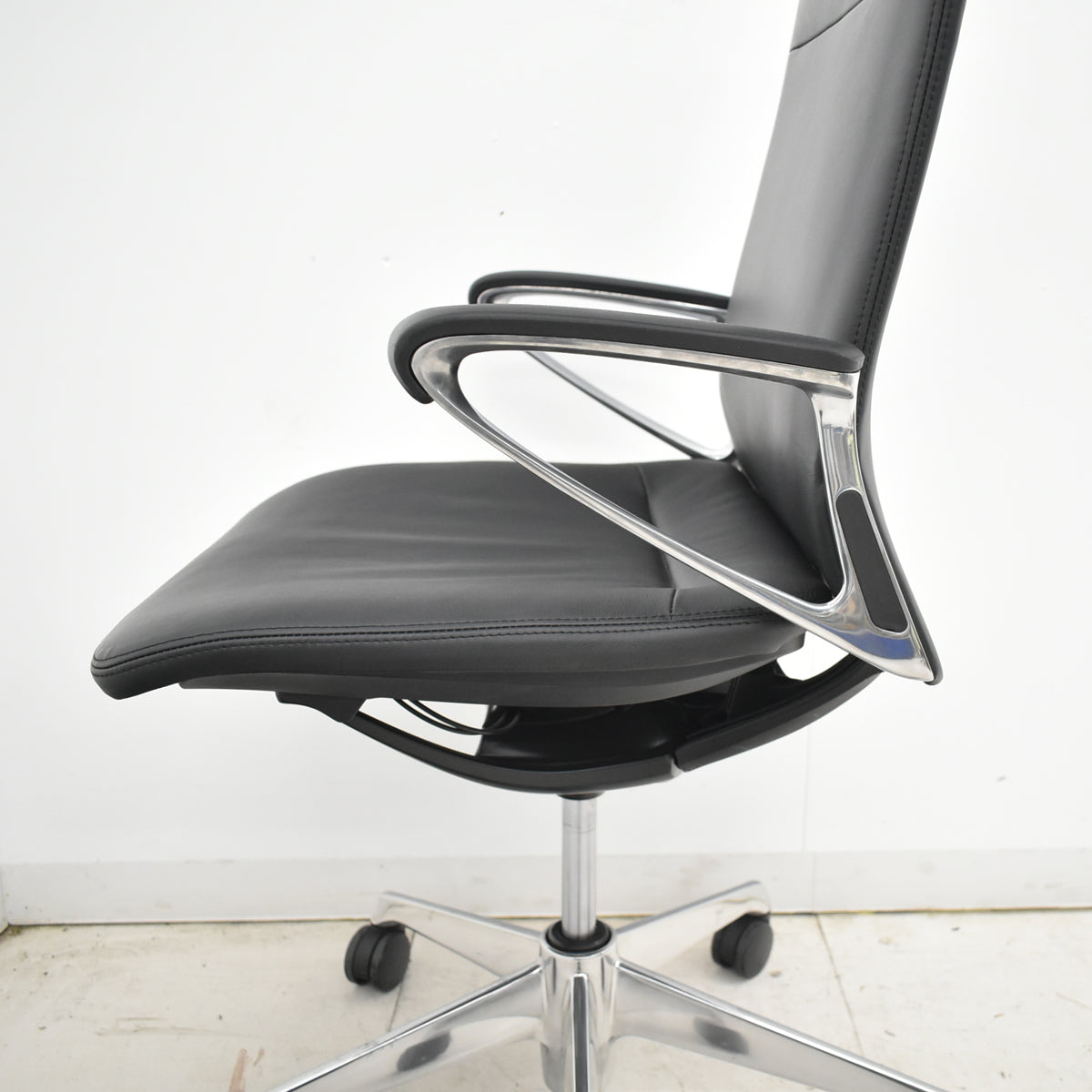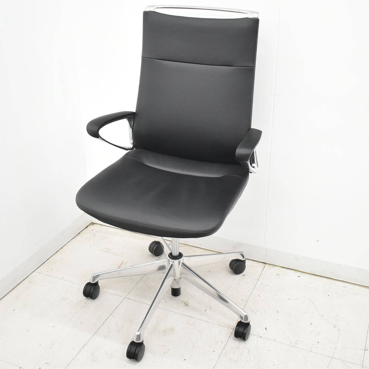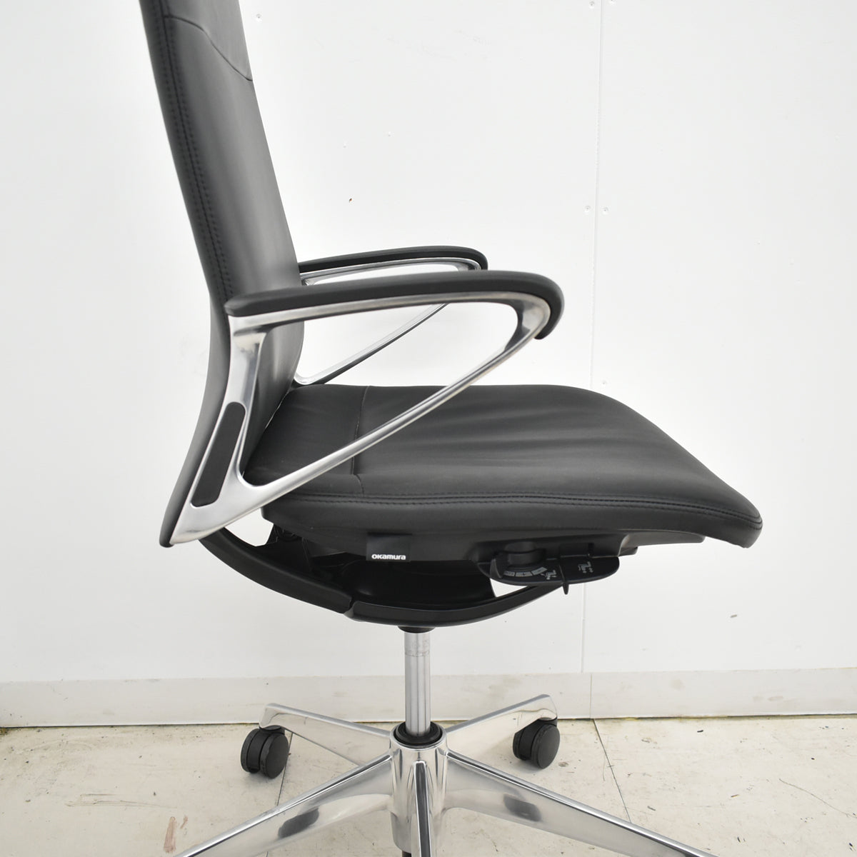 【中古】オカムラ モードチェア ハイバック 固定肘 総革張り 2020年製 ブラック 2026012608【中古オフィス家具】