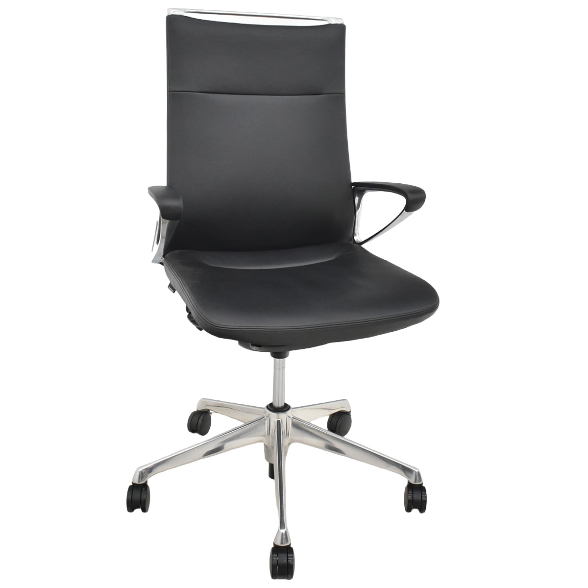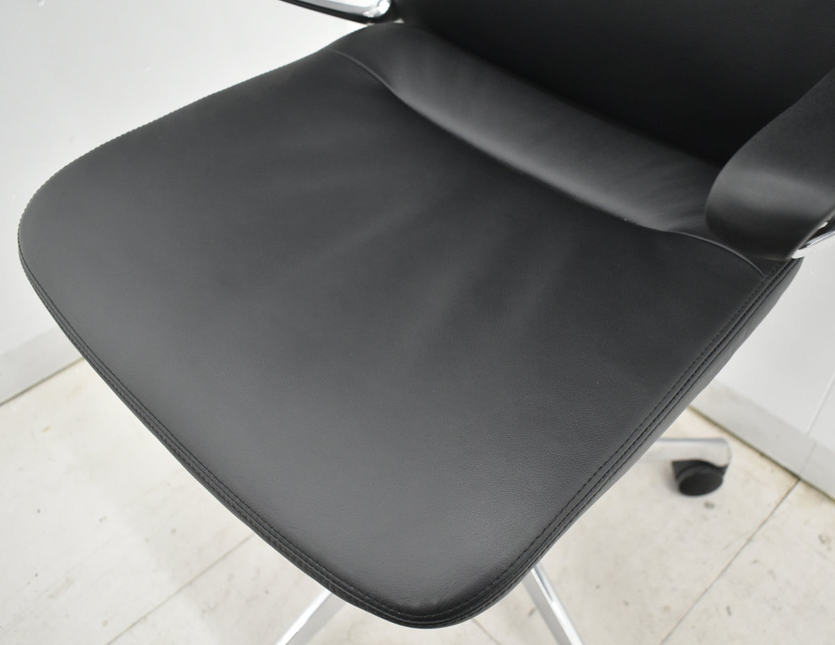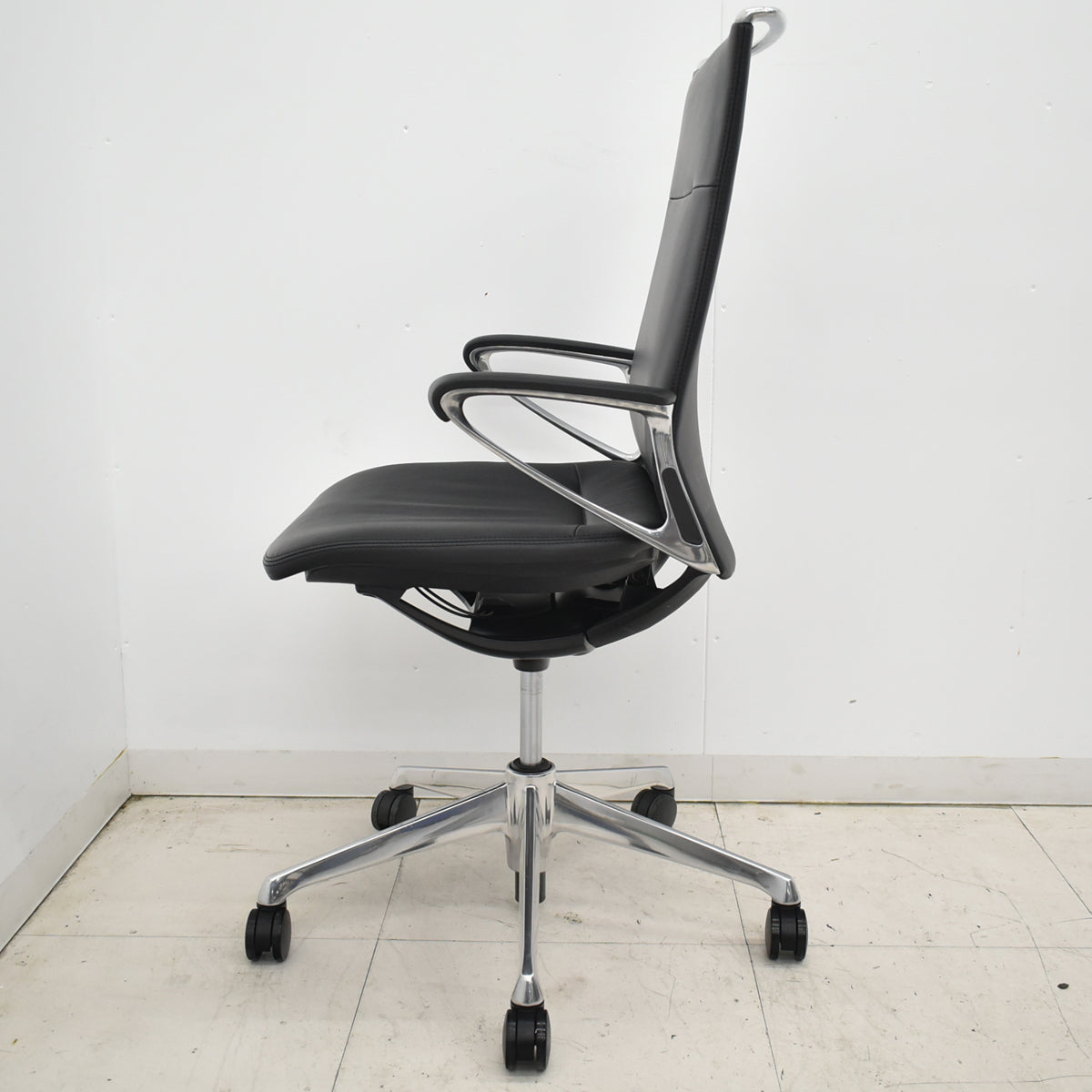 【中古】オカムラ モードチェア ハイバック 固定肘 総革張り 2020年製 ブラック 2026012608【中古オフィス家具】