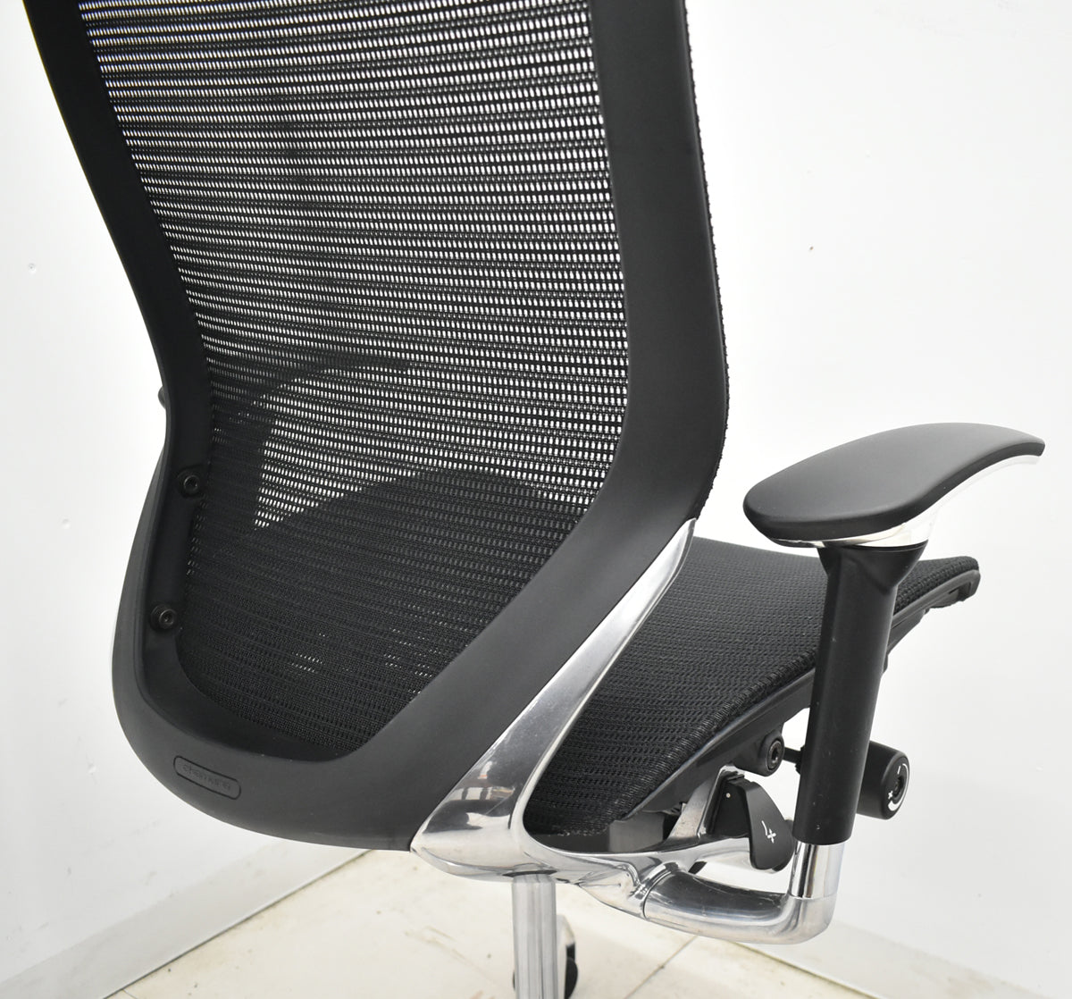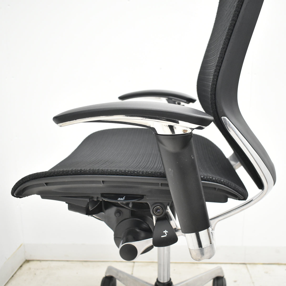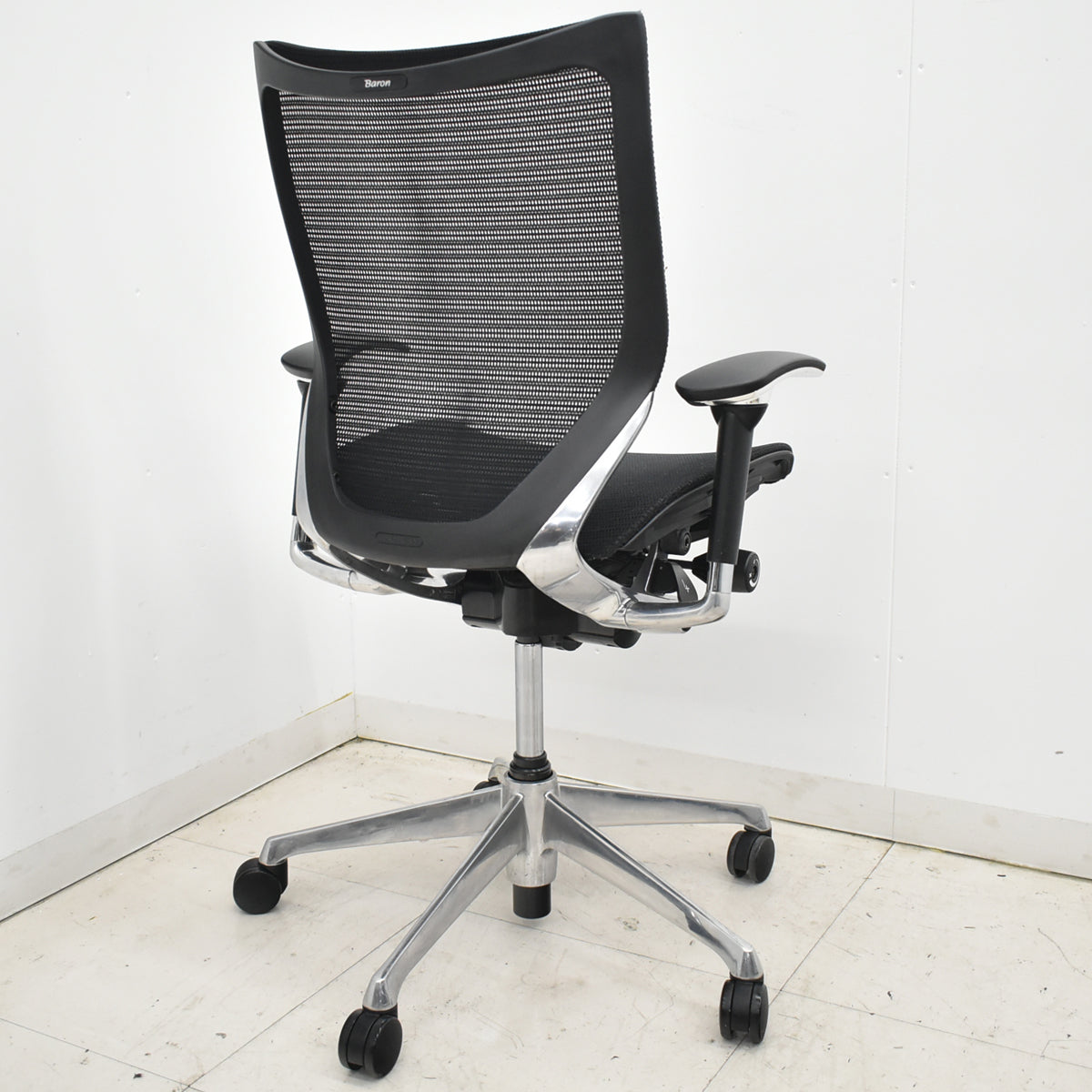 【中古】オカムラ バロン ローバック 可動肘 ポリッシュ 昇降ガス新品交換済 ブラック 2026012701【中古オフィス家具】