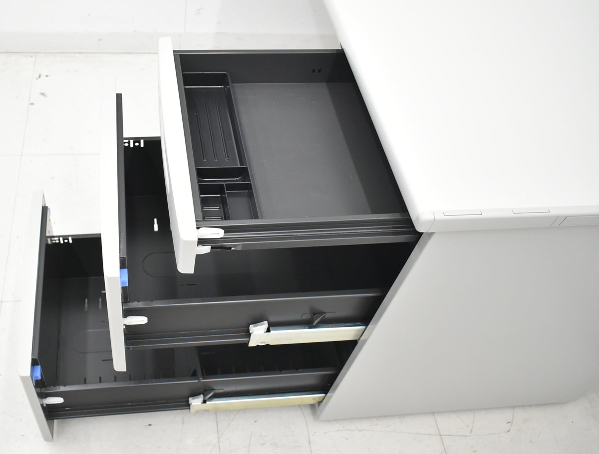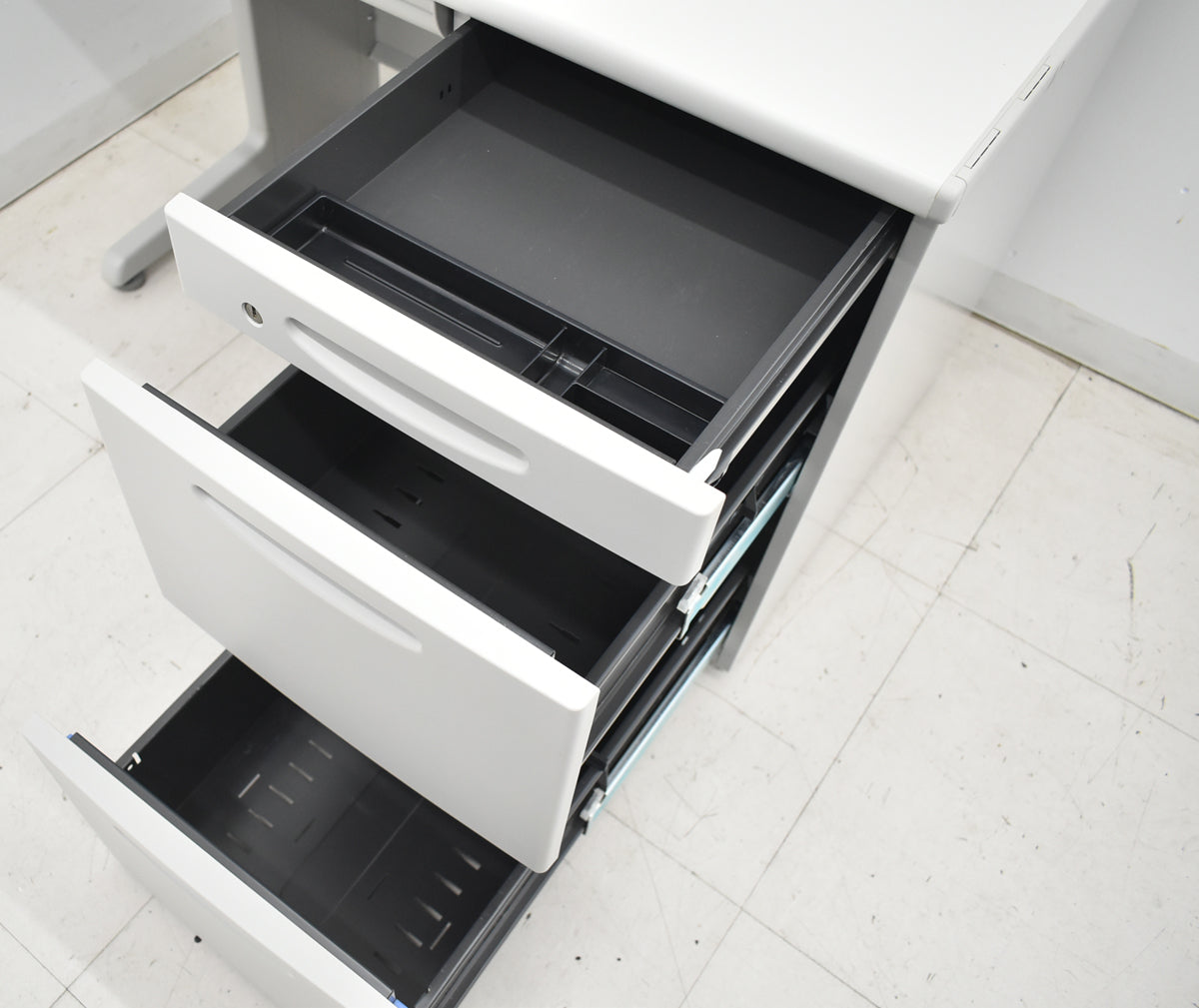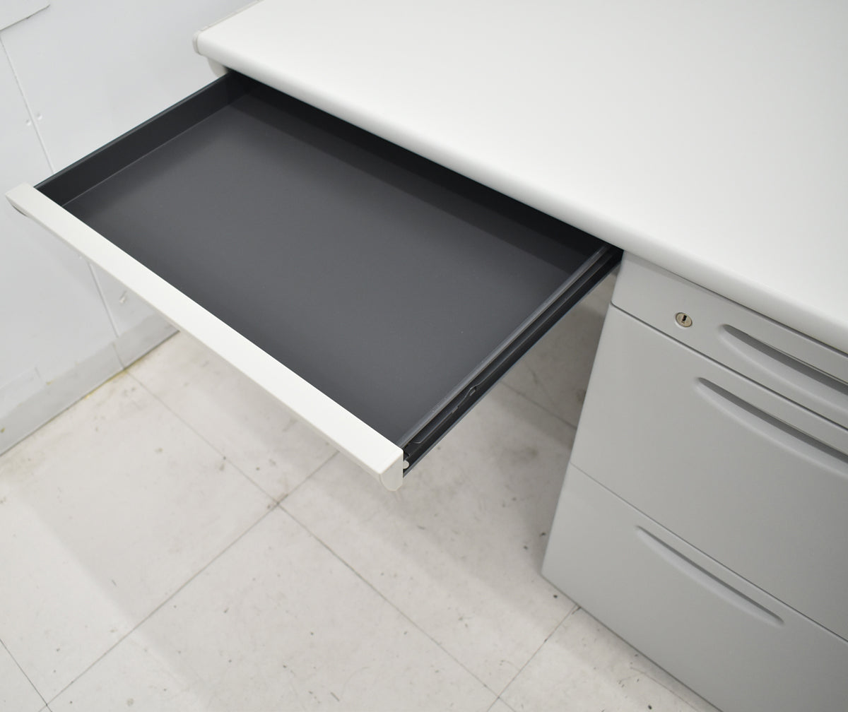 ■備考 オカムラ SD-V片袖デスク W1000 オカムラのSD-V片袖デスクです。 幅1000のコンパクトな天板でありながら、天板奥に配線口が2個付いていてコード類をすっきりまとめられ、広く作業ができます。足元も広く取れる形状のデスクなので窮屈さを感じにくいです。 設置場所が限られていたりオフィス自体がコンパクトな方にもオススメの事務机です。 ※天板スレ、キズなど少々あります。 ※写真に写らないレベルのうっすらしたへこみがあります。使用上は問題ありません。 ※鍵付。 ※複数入荷商品中の代表的な1台を撮影したものです。中古品ですので全く同じ状態というわけではありませんが、概ね掲載画像程度のものをお届けするものとご理解ください。 ※佐川急便ではなくトールエクスプレスジャパン・西濃運輸・自社便・チャーター便・チャーター便(混載)等で弊社の判断によりお届け方法を決定させていただきます。 4t車が進入できる路上までのお届けとなります。 トラック荷台上でのお引渡しとなります。 男性2名以上での荷受けを推奨しております。 日曜祝日の配達日指定が出来ません。 配達時間帯指定が出来ません(9~17時着・配達当日配送ルートが決まるため)。 4t車が進入できない場所への配送・日曜祝日着・配達時間帯指定・トラックからの荷下ろし作業・搬入作業・組立作業等をご希望である場合はお見積りにて対応となりますのでお申し付けください(お見積りできない場合がございます)。 クリーニングとメンテナンスをしっかり行ってお届けします。 この商品の程度は中古品として美品といえます。 多少の擦れや傷はあるものの気になる程ではないでしょう。 御使用端末の環境により多少画像の表示色と実物の色に差違が生じる場合がございますのでご了承ください。 |